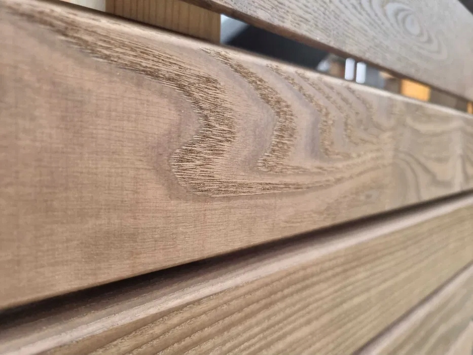 Під час процесу модифікації в деревині відбуваються хімічні та структурні зміни, які покращують основні властивості матеріалу. Отриманий продукт набагато стабільніший і міцніший – це чудовий матеріал для використання в місцях, схильних до погодних умов, наприклад на відкритих терасах.