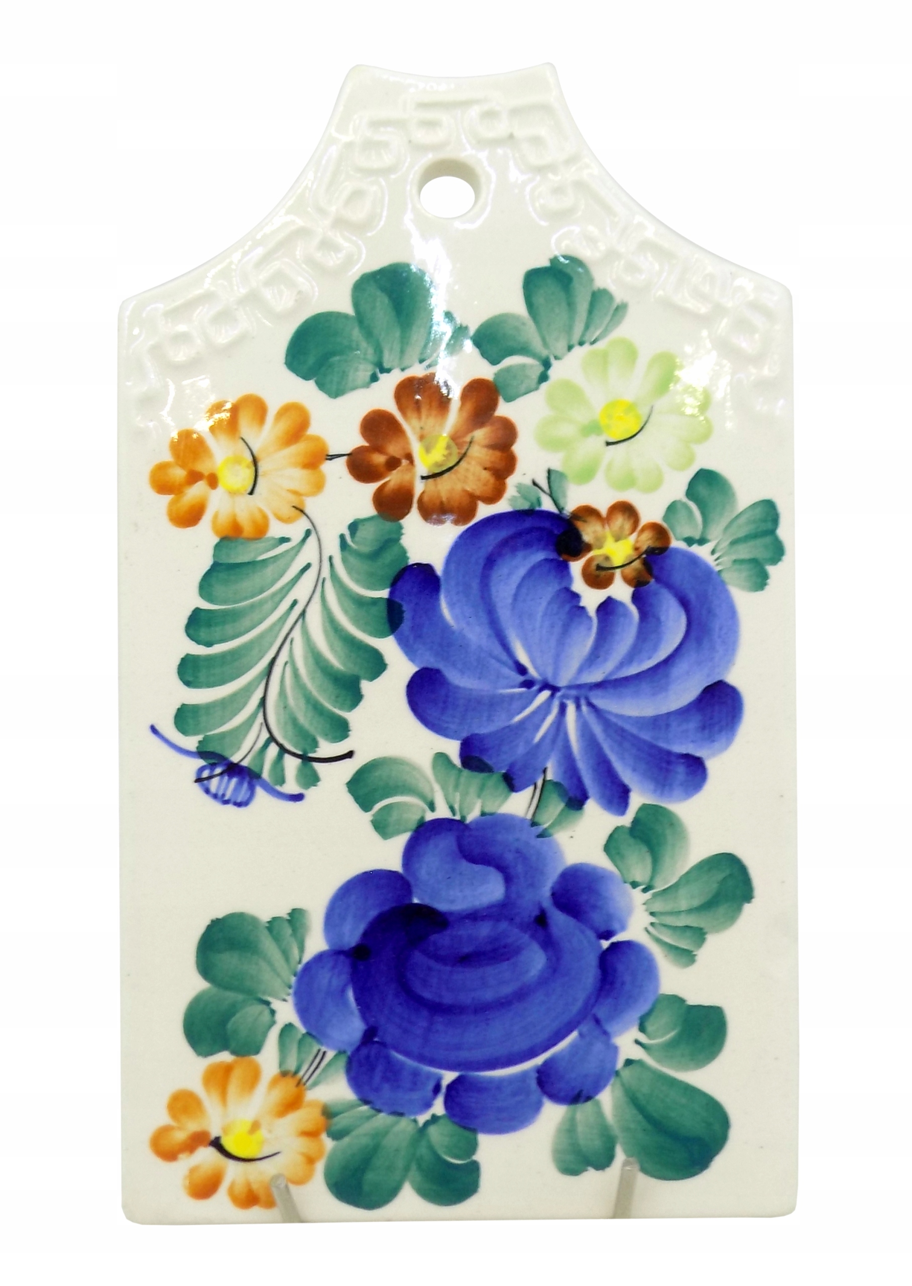 Фаянсова дошка з Влоцлавека 1970-1980-х років. Підписано. Ручний розпис. Шаблон 1012, затверджений у 1968 році. Дизайн Віта Плажевського. Розміри; висота 21 х 12 см. Товар після ремонту. Стан та місце ремонту плати на фото.