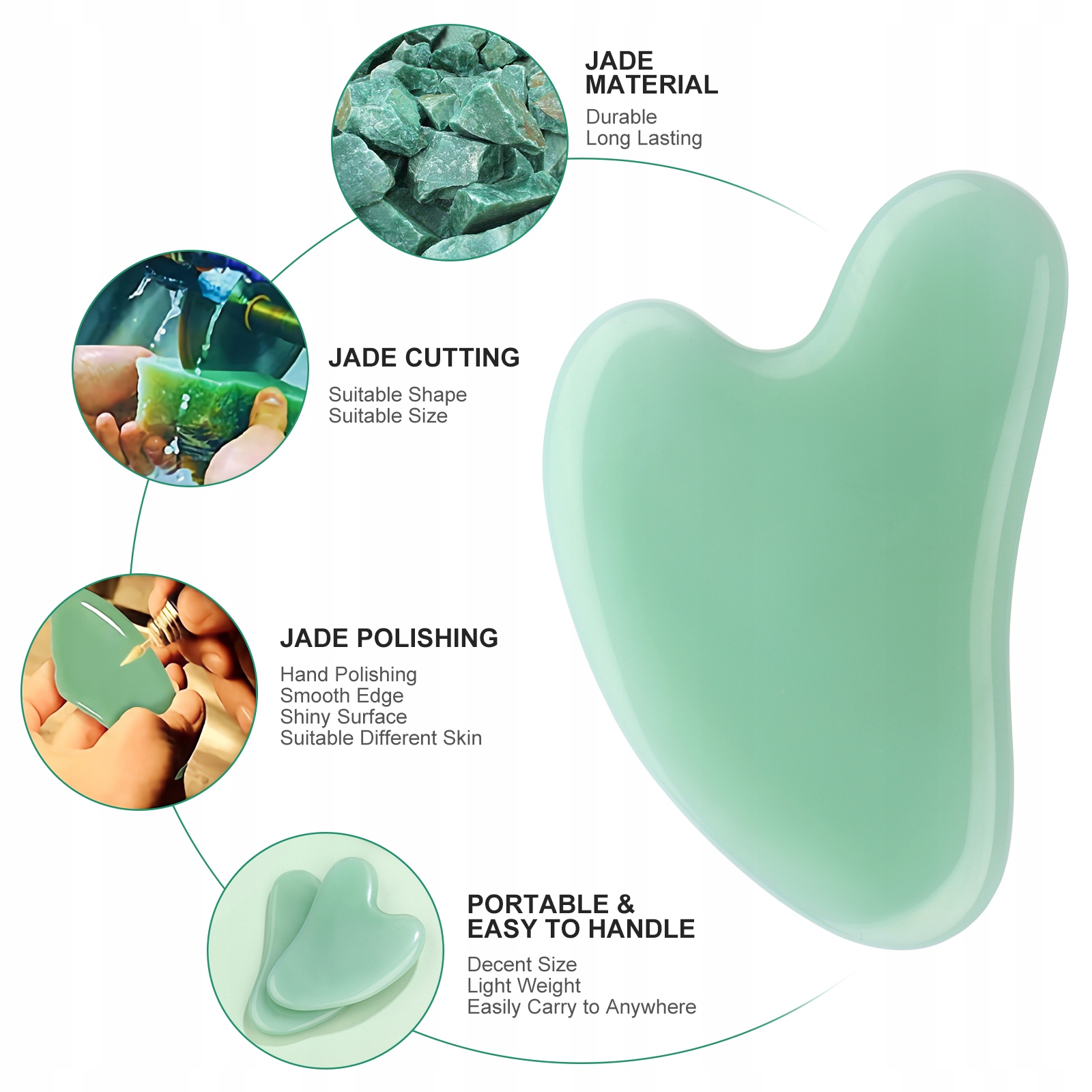 - Масажна дошка виготовлена з нефритового матеріалу. єдиний масажний інструмент, найкращий масажний інструмент у масажах. При утриманні і натисканні вона зручна і гладка, ви не пошкодите шкіру. Ідеальний подарунок для родини, друзів, представників або шкільних чиновників.