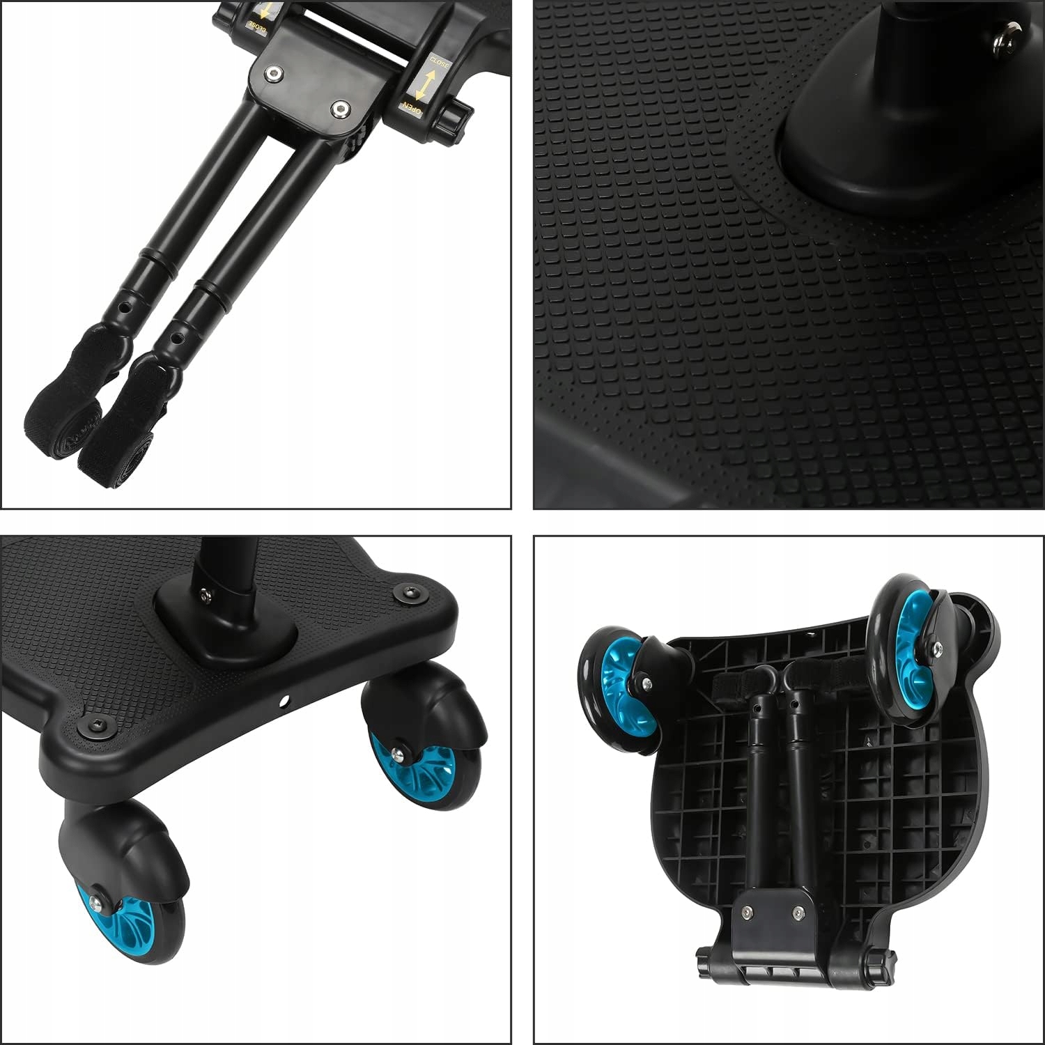 - Конструкція з подвійним колесом на 360° – конструкція з подвійним колесом підвищує стабільність педалей, ефективно запобігає скочуванню та є більш безпечним у використанні. Універсальне колесо на 360°, після підключення дитячої коляски педалі можна рухати в будь-якому напрямку.