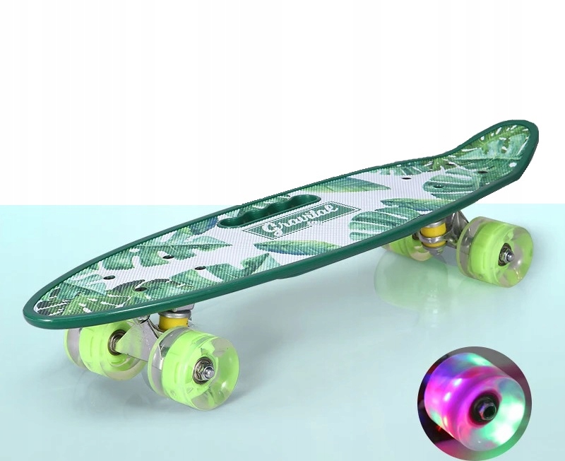 ▶️ Скейтборд Fishka Glowing Wheels Rubber Trucks LED RGB - GREEN