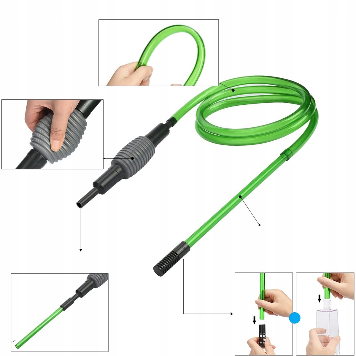 - Головний клапан: набір для очищення акваріуму. Насос зручно використовувати. З'єднання призначені для запобігання витоків. Просто натисніть насос кілька разів, і вода почне автоматично текти.