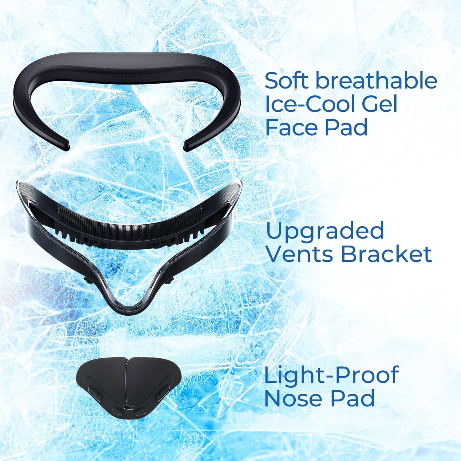 【М'який і еластичний комфорт для більш тривалої забави】 шайба для обличчя для Quest 2 має піну пам’яті та пружинний, м'який охолоджуючий гель, з желе -консистенцією та свіжим сніжним холодом, забезпечуючи найвищий комфорт. Настільки комфортно, що ви не захочете його знімати!