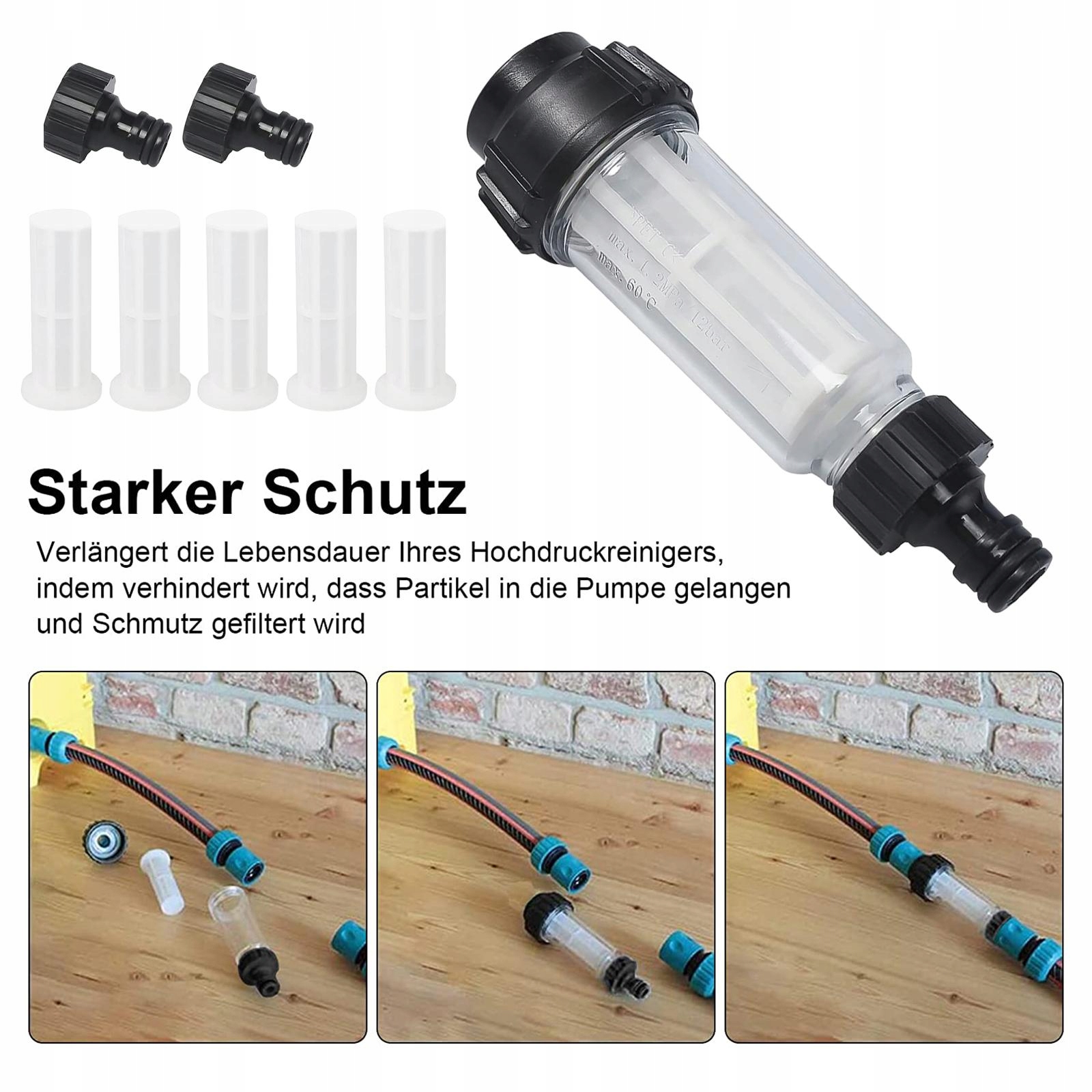 Потужний захист: висока ефективність фільтрації, ефективно запобігає потраплянню частинок у насос і фільтрує забруднення, подовжує час роботи мийки високого тиску.