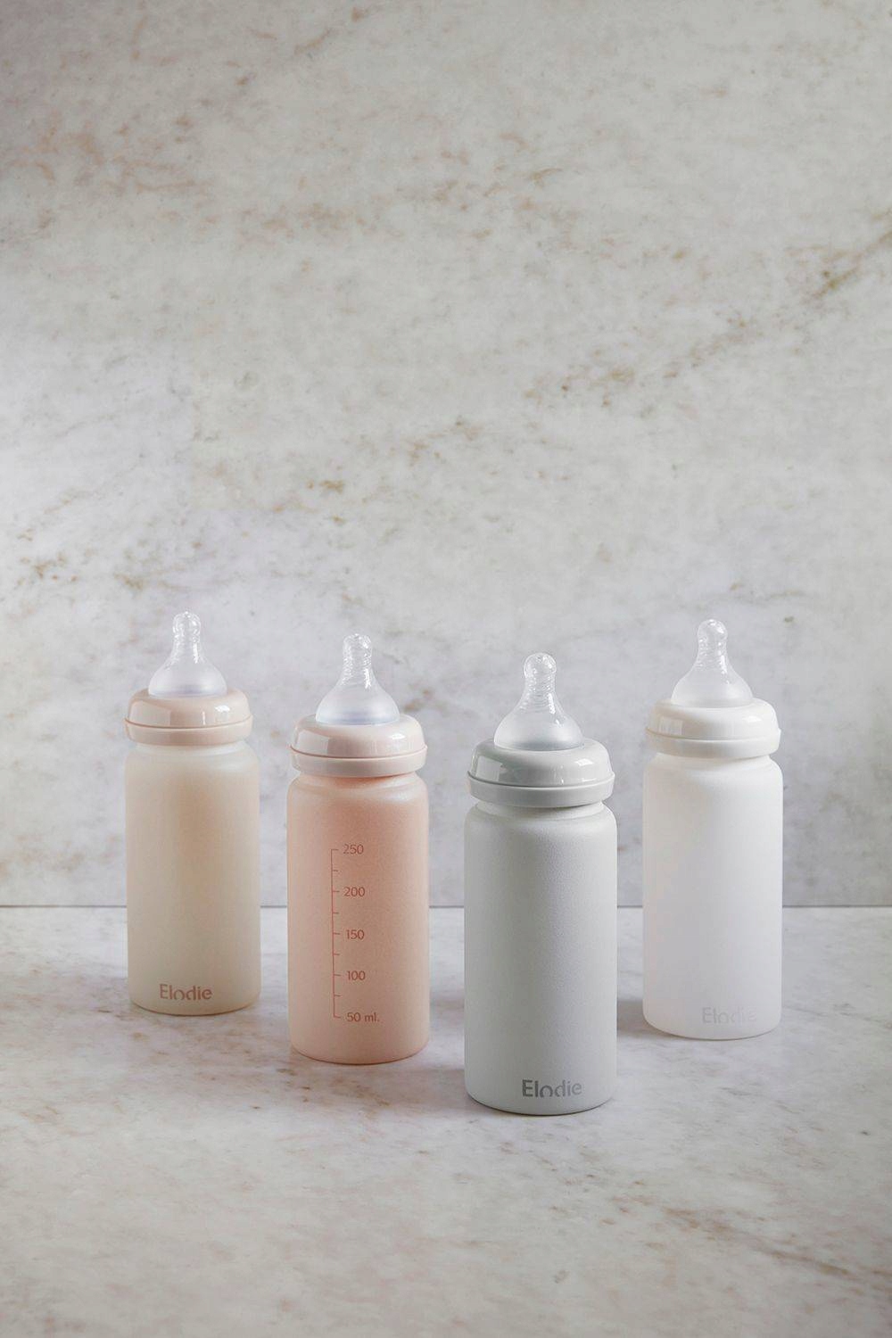 Екологічно чиста скляна пляшечка для годування Elodie із термостійкого боросилікатного скла з соскою з повільним потоком — ідеальна перша пляшечка для вашої дитини. Його не може не вистачати в дитячому ліжку.