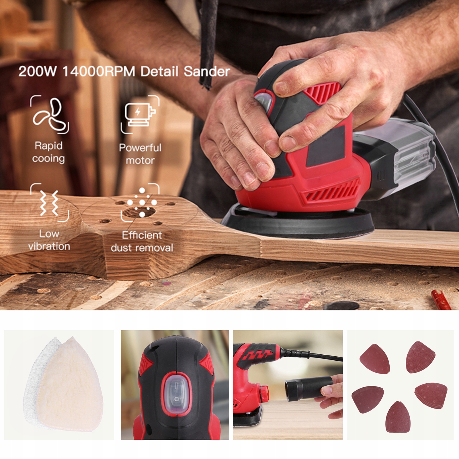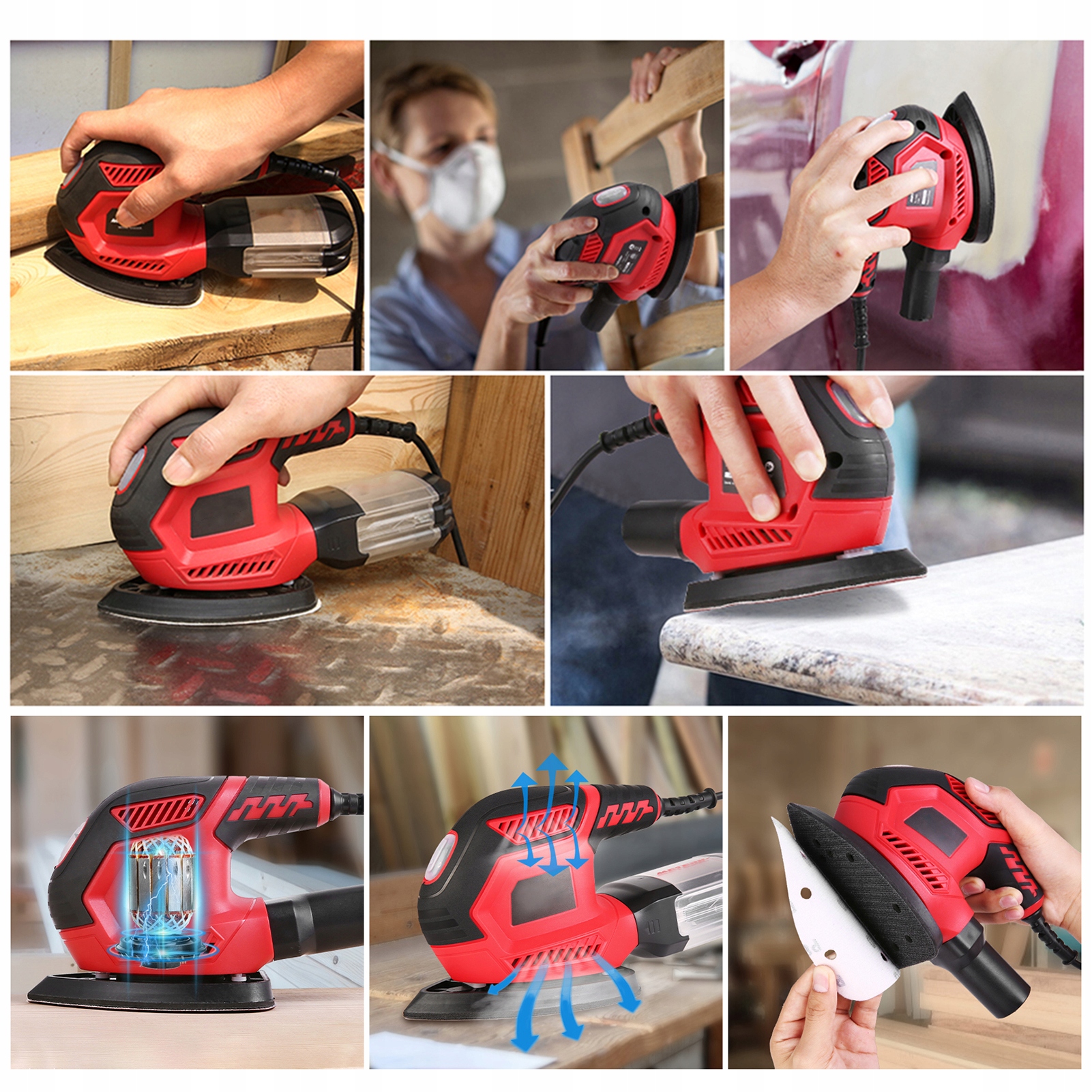 - Шліфувальна машина для деталей, компактна шліфувальна машина 1,6 A, 200 Вт, 14000 об./хв. Ефективні системи збору пилу з полірувальними накладками 2 шт. і 20 наждачними накладками для вузьких місць для шліфування/полірування в домашньому оздобленні та саморобних робіт.