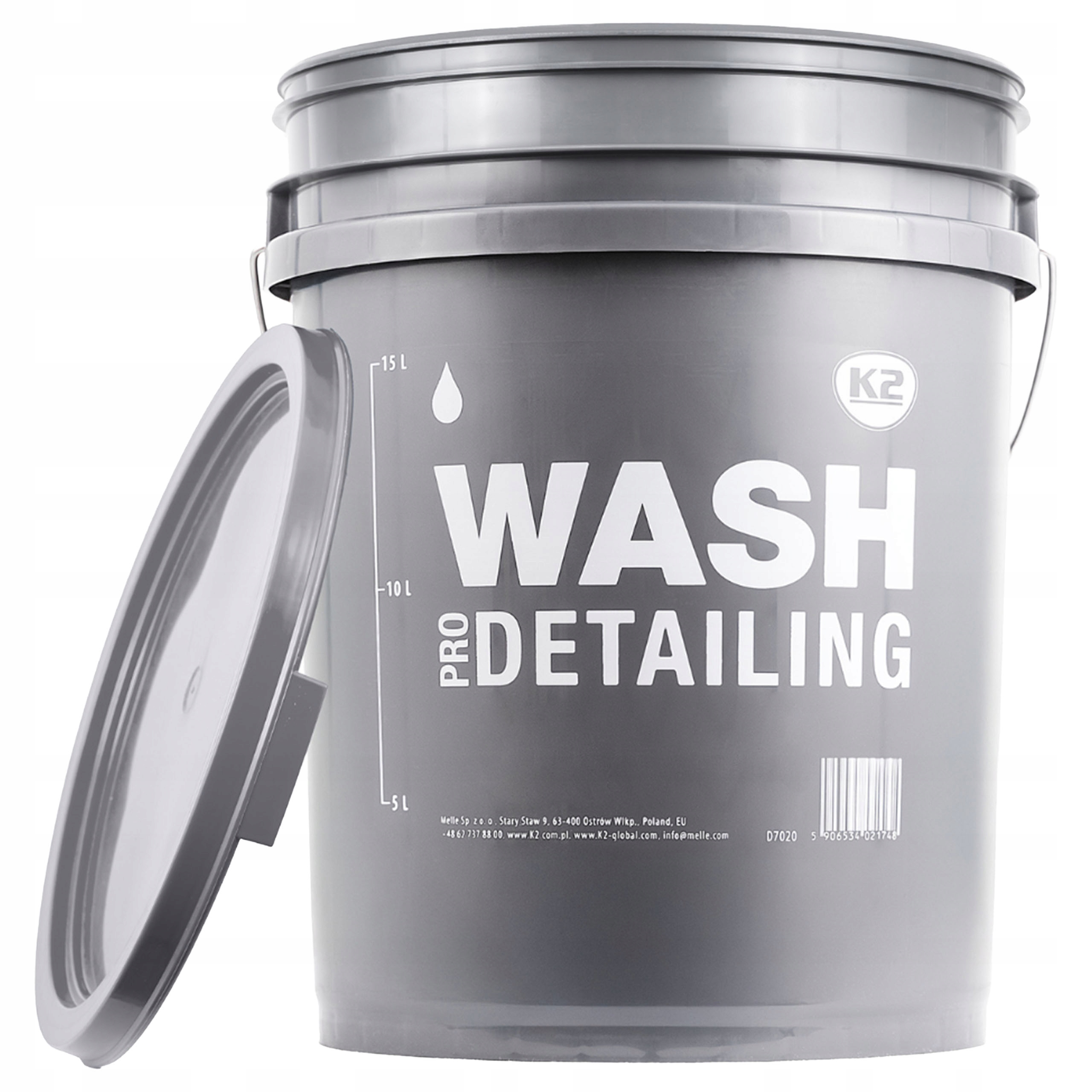 Сіре відро для деталізації K2 "WASH" об'ємом 20 літрів - незамінний інструмент для кожного шанувальника чистої фарби.
