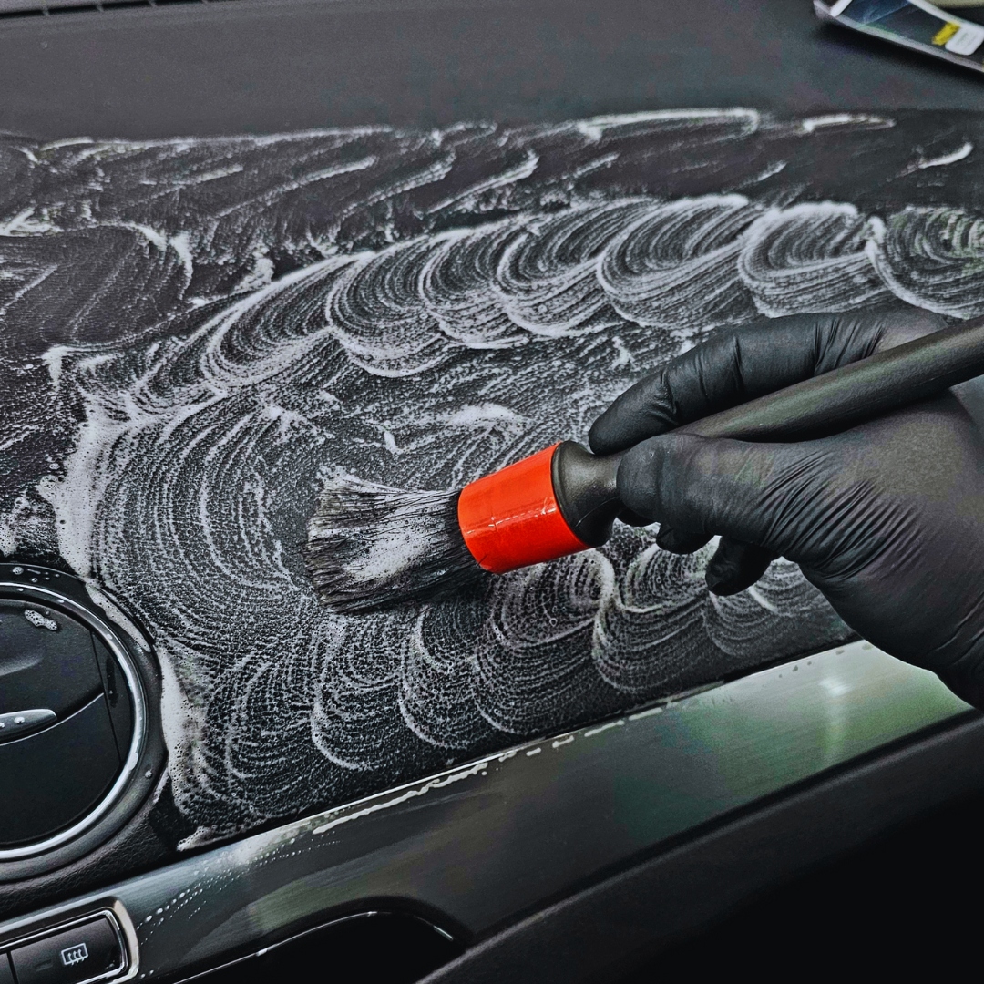 Кисть, призначена для очищення твердих -доречкових місць , деталей та куточків та куточків. Ергономічна пластикова ручка не втомлює руки і забезпечує зручність використання, а високоякісна природна синтетична щетина і пластикова кришка дозволяє делікатна та ефективна очищення всіх елементів. Це ідеально як зовні, , так і всередині машини . Можна використовувати сухий і вологий.