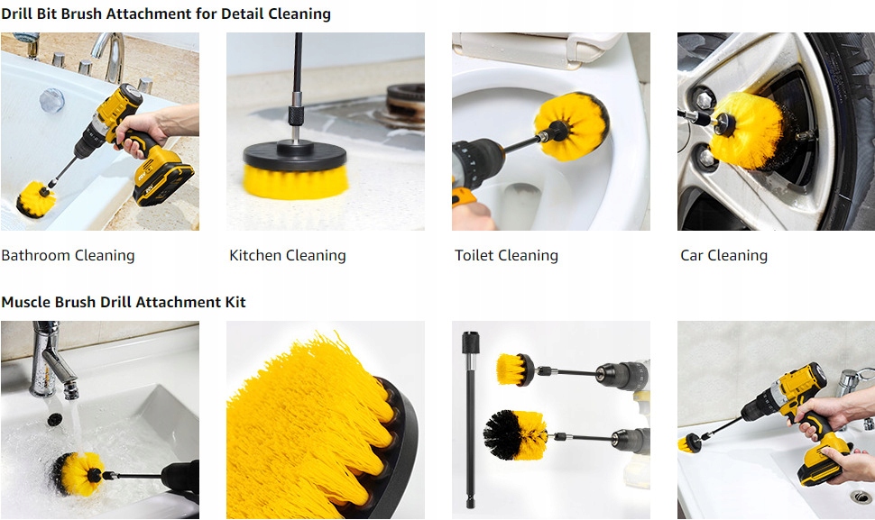 3 середня твердість свердління пензлів: виготовлена з надзвичайно міцного, високоякісного поліпропілену, кожна щетина досить жорстка. Підходить для очищення автомобілів, дозволяє швидше виконувати стійкі роботи з очищення, не малюючи лак або ободи. Він також ідеально підходить для ванних кімнат, душових, ванн, туалет, плиток, стиків, підлоги, килимів, кухні, мийок, кутів, грилів та оббивки автомобілів тощо. Один набір задовольнить усі ваші потреби, пов’язані з прибиранням.