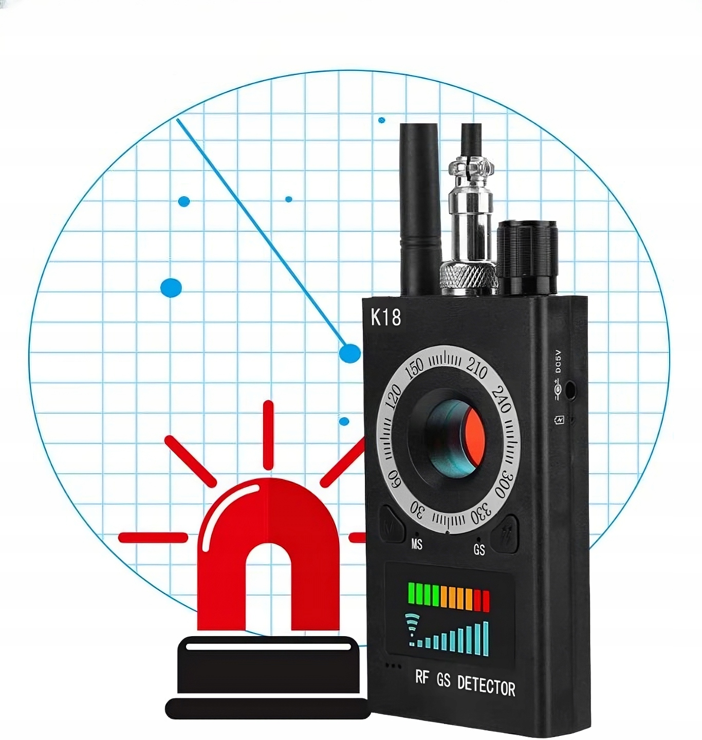 ✅Подбайте про свою безпеку за допомогою детектора DM-K18, який є універсальним радіопристроєм, який дозволяє виявляти та локалізувати більшість активних пристроїв, доступних на ринку, шпигунських пристроїв, таких якпрослуховування GSM, бездротові Wi-Fi камери та GPS-локатори (трекери).