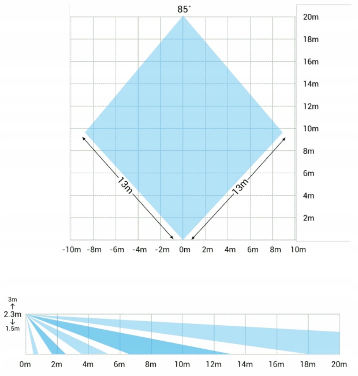 - Метод виявлення: PIR (квадратичний піроелемент) + MW (діапазон K)