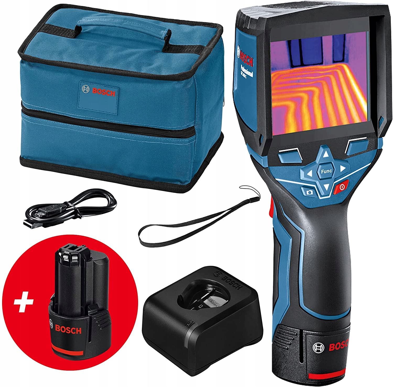 Bosch GTC 400 C — це тепловізор, призначений для вимірювання температури поверхні. Зображення на дисплеї показує досліджувану область в інфрачервоному діапазоні, що дозволяє знайти різницю температур. Прилад дозволяє виявляти різноманітні дефекти будівельних матеріалів, елементів конструкцій, ізоляції, систем водопостачання та опалення, електричних компонентів, компонентів двигуна внутрішнього згоряння. . Завдяки підключенню Wi-Fi і додатку Bosch Measuring Master, пристрій дозволяє зберігати та надсилати проведені вимірювання та відображати їх на великому екрані для більш детального аналізу досліджуваної поверхні.