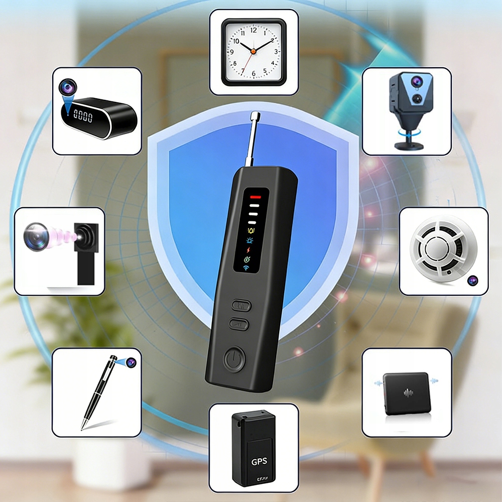 ✨ Сканування на 360° у всьому спектрі дозволяє точно визначати місцезнаходження, як металодетектор, навіть якщо пристрої приховано в стінах, детекторах диму чи розетках, захищаючи вашу конфіденційність і безпеку.