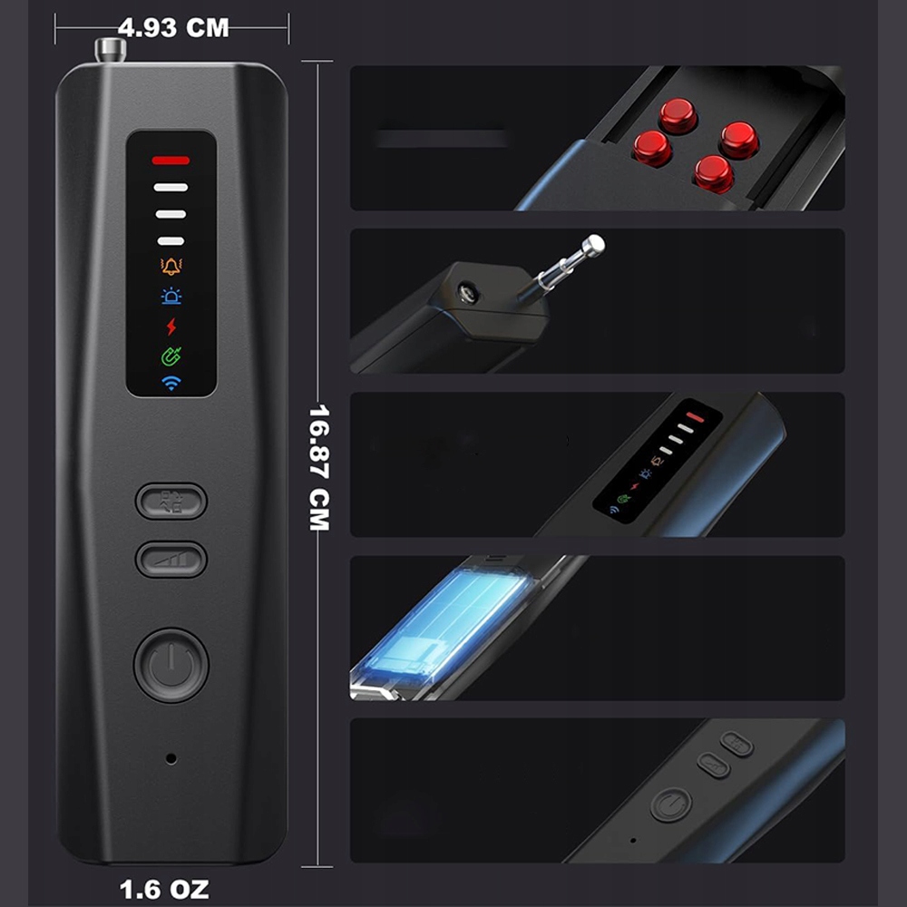 ✨ Оснащено технологією потрійного радіочастотного + інфрачервоного + магнітного датчика, виявлення в реальному часі бездротових камер 4K/5G (1-6,5 ГГц), магнітні GPS-локатори, інфрачервоне прослуховування телефонних розмов тощо.
