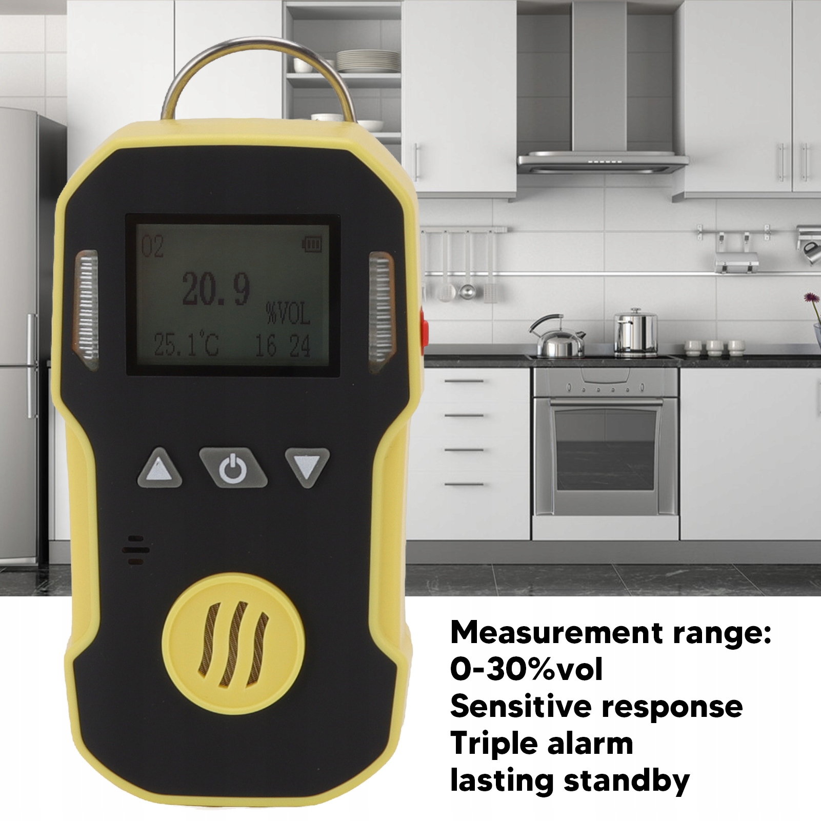 Функція: 1. Діапазон вимірювання: портативний детектор кисню має діапазон вимірювання 0-30% об. і чутливість.