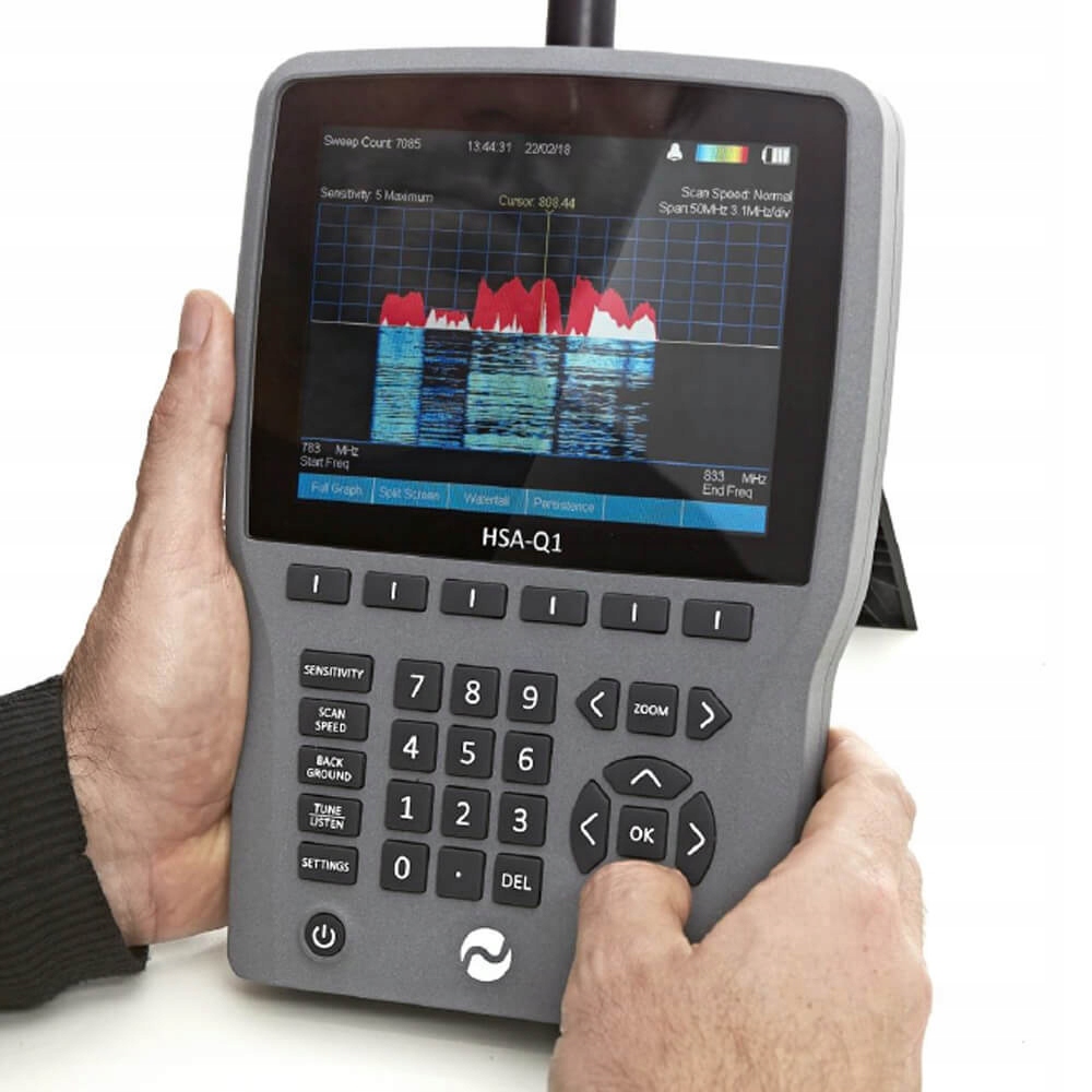HSA-Q1 — це інтегрований портативний аналізатор радіоспектра, призначений для професійного використання для протидії стеження (технічні заходи протидії нагляду) ). Він пропонує найкращі можливі технічні характеристики та функціональні можливості, які полегшують роботу, зберігаючи невеликі розміри, мобільність і просте керування. HSA-Q1 інтуїтивно зрозумілий у використанні завдяки простому інтерфейсу та автоматизації роботи пристрою.