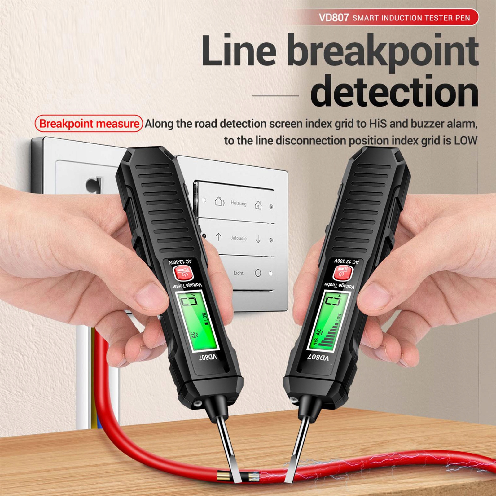 2. Безконтактне визначення напруги: використовуйте функцію безконтактного визначення напруги, щоб безпечно ідентифікувати заряджені провідники в широкому діапазоні від 12 В до 300 В без прямого контакту.