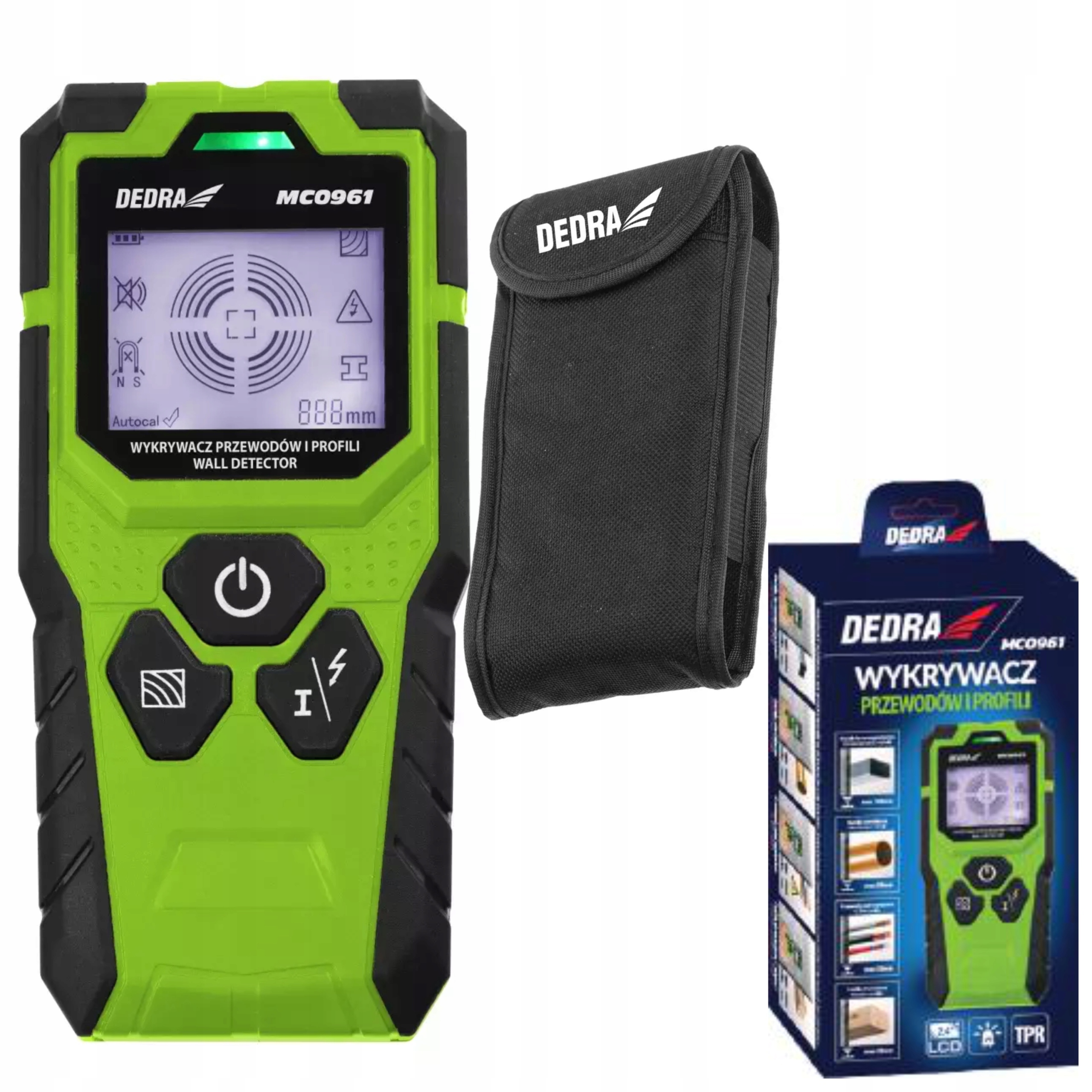Детектор проводів і профілів DEDRA MC0961 дозволяє виявляти металеві елементи і профілі, електропроводи без і зі змінною напругою, деревину. Допомагає заповнити технічну документацію будівель. Чіткий світлодіодний дисплей з підсвічуванням дозволяє ефективно інтерпретувати виявлені елементи, а сигнальний діод (трьох кольорів: зелений, жовтий, червоний) вказує на те, що елемент, який ви шукаєте, знайдено. Крім того, кабельний детектор має звуковий сигнал, щоб ви не пропустили жодного сповіщення. У комплекті з пристроєм є чохол, тримач для пояса, акумулятор 9 В та інструкція користувача.
