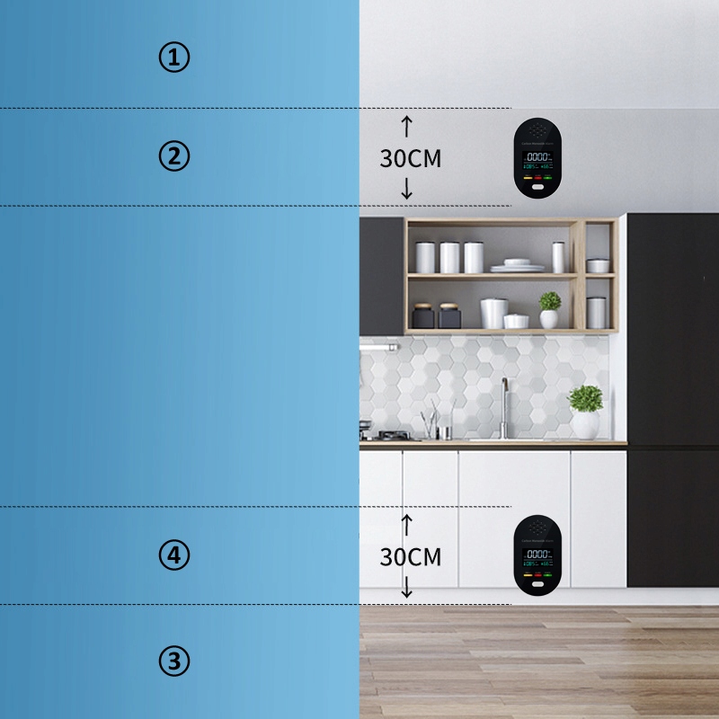 - Стандарт тривоги (стандарт UL 2034): ≥70±5 ppm, сигналізація протягом 60~240 хвилин; ≥150±5ppm, тривога протягом 10~50 хвилин; ≥400±10 ppm, сигналізація протягом 4~15 хвилин;
