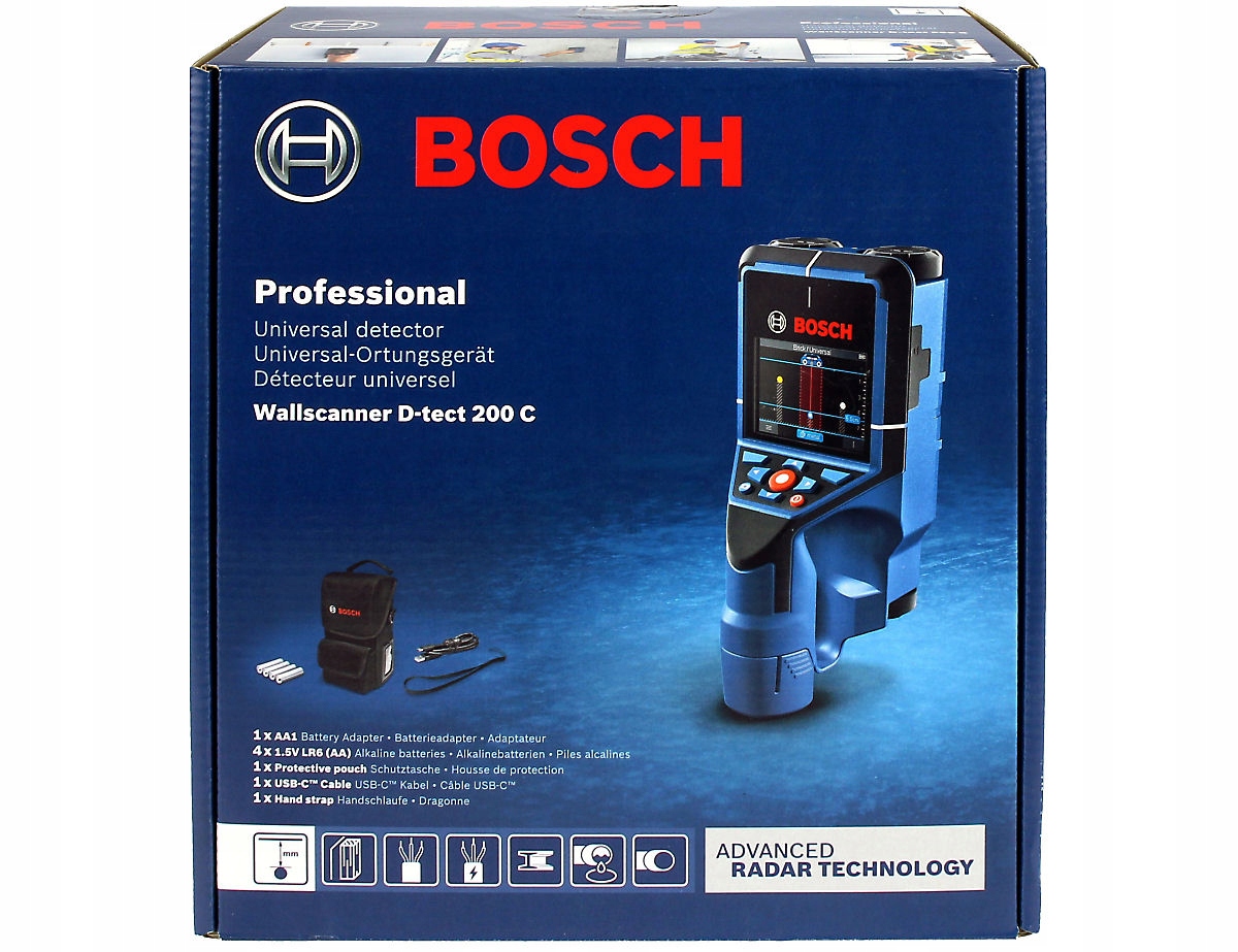D-TECT 200 C від BOSCH є першим у світі детектором такого типу, який оснащений сучасними радарними та індуктивними датчиками, які дозволяють локалізувати об’єкти на глибині до 20 см, а завдяки великому рідкокристалічному дисплею, на якому під час роботи відображаються всі повідомлення та інструкції (також польською мовою), ним неймовірно легко та просто користуватися.