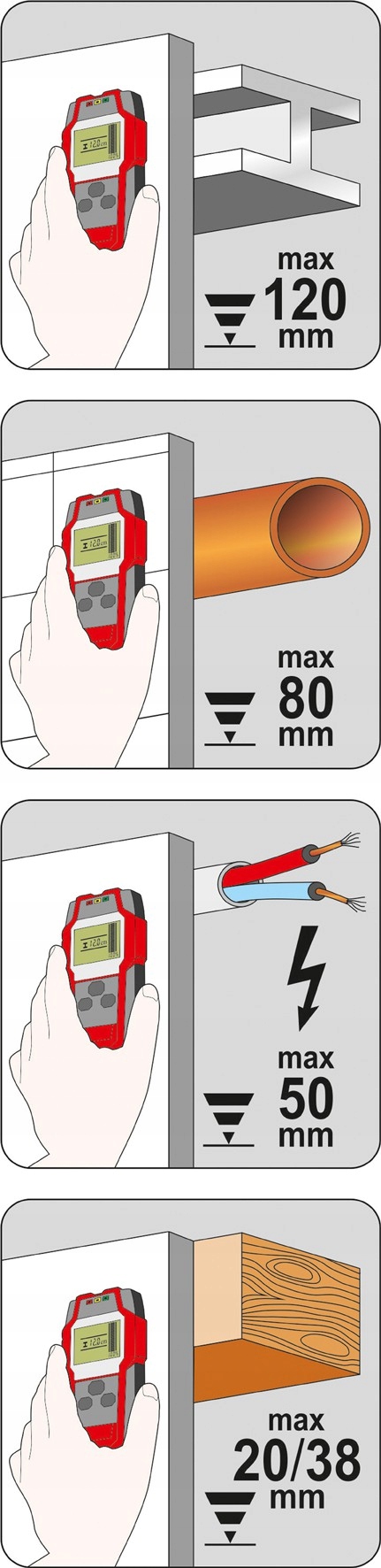 - Глибина виявлення дерев'яних профілів: 38 мм