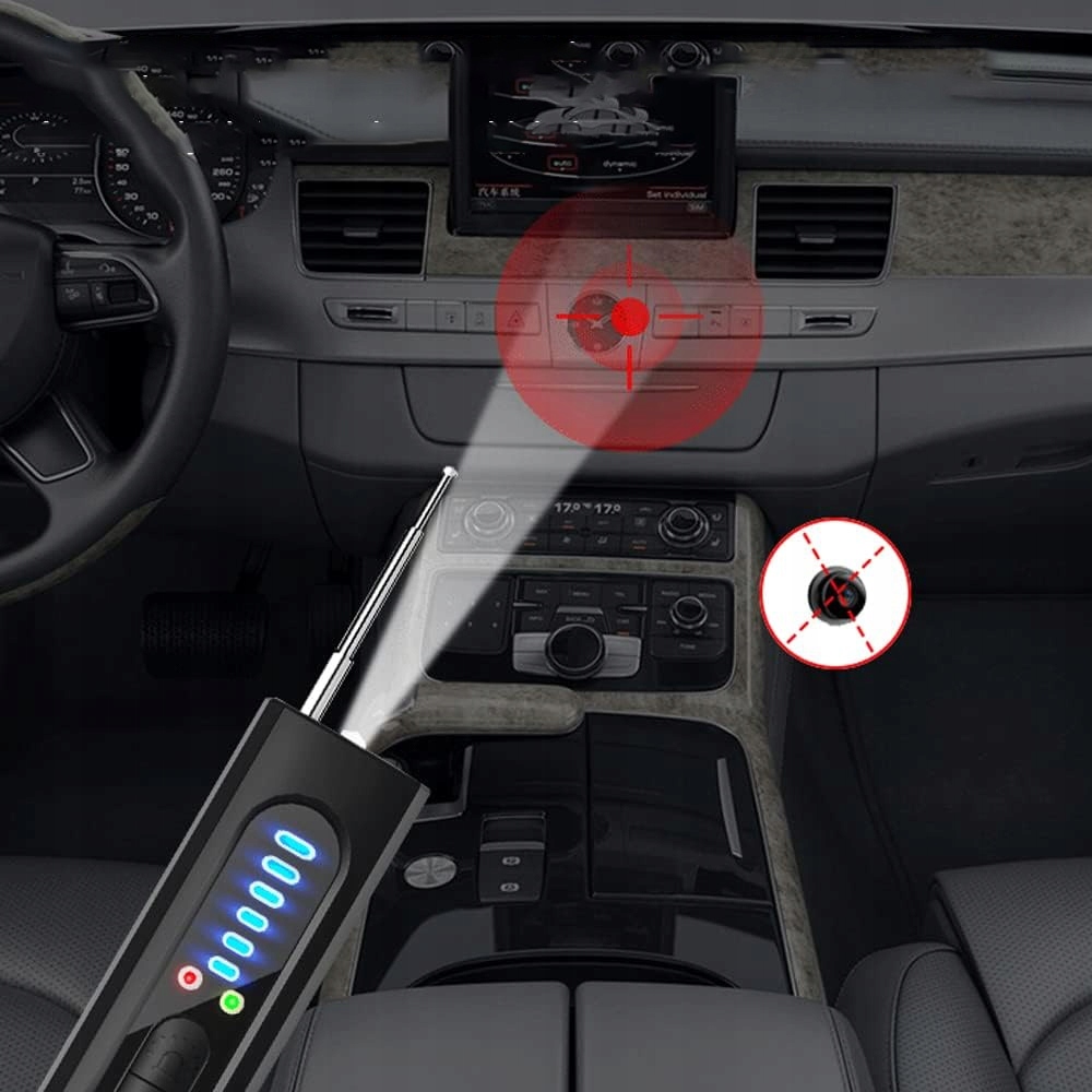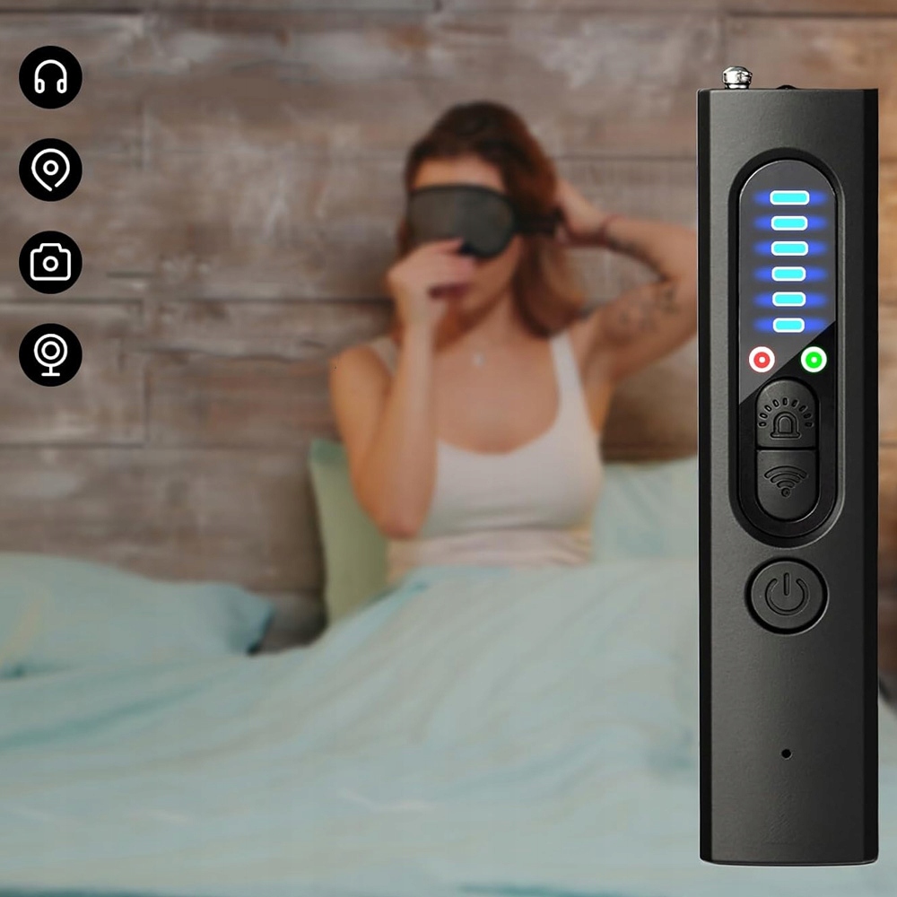 👀Детектор прихованої камери 4 в 1: 1. Виявлення радіочастотного сигналу для виявлення активних передавачів радіочастотного підслуховування, таких як телевізійні камери , GPS-локатори та бездротові аудіожучки. 2. Детектор лінз камери та детектор камери для виявлення прихованих камер-обскур шляхом простого візуального огляду за допомогою інфрачервоного лазерного сканування. 3. Виявлення магнітного поля для пошуку небажаних, широко використовуваних намагнічених GPS-трекерів. 4. Ліхтарик, більше не турбуйтеся навіть у темряві.