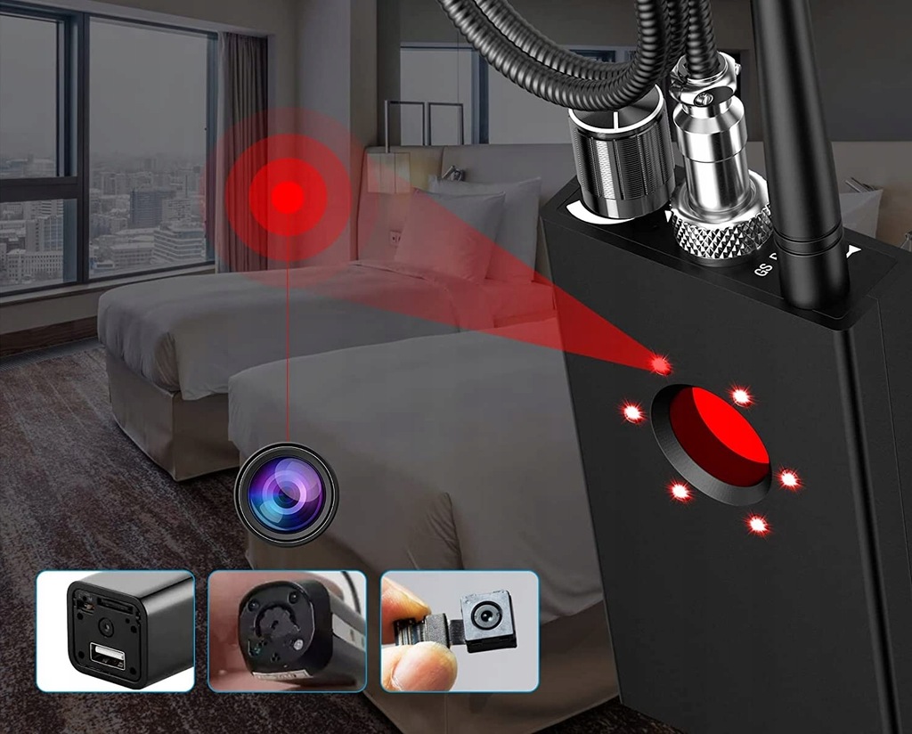 - Може виявляти пристрої з бездротовими камерами від 1,2G до 5,8G, виявляти помилки магнітного позиціонування GPS у режимі очікування.