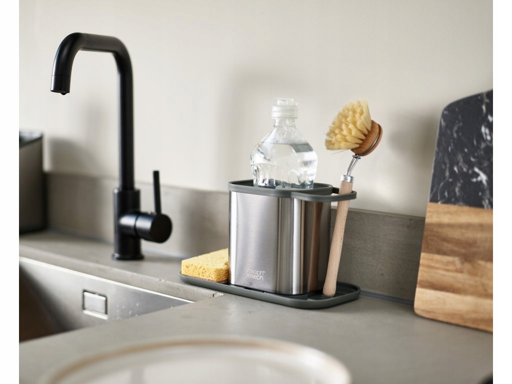 вставте для дуетної сталевої мийки Joseph Joseph 851681 з простором для миючого засобу, губки та щітки. Знімний лоток для крапельниці полегшує очищення. Поверхня з нержавіючої сталі з покриттям, стійкою до відбитків пальців, стійкою до відбитків пальців. Розміри: 13 x 23 x 11,3 см (висота x ширина x глибина).