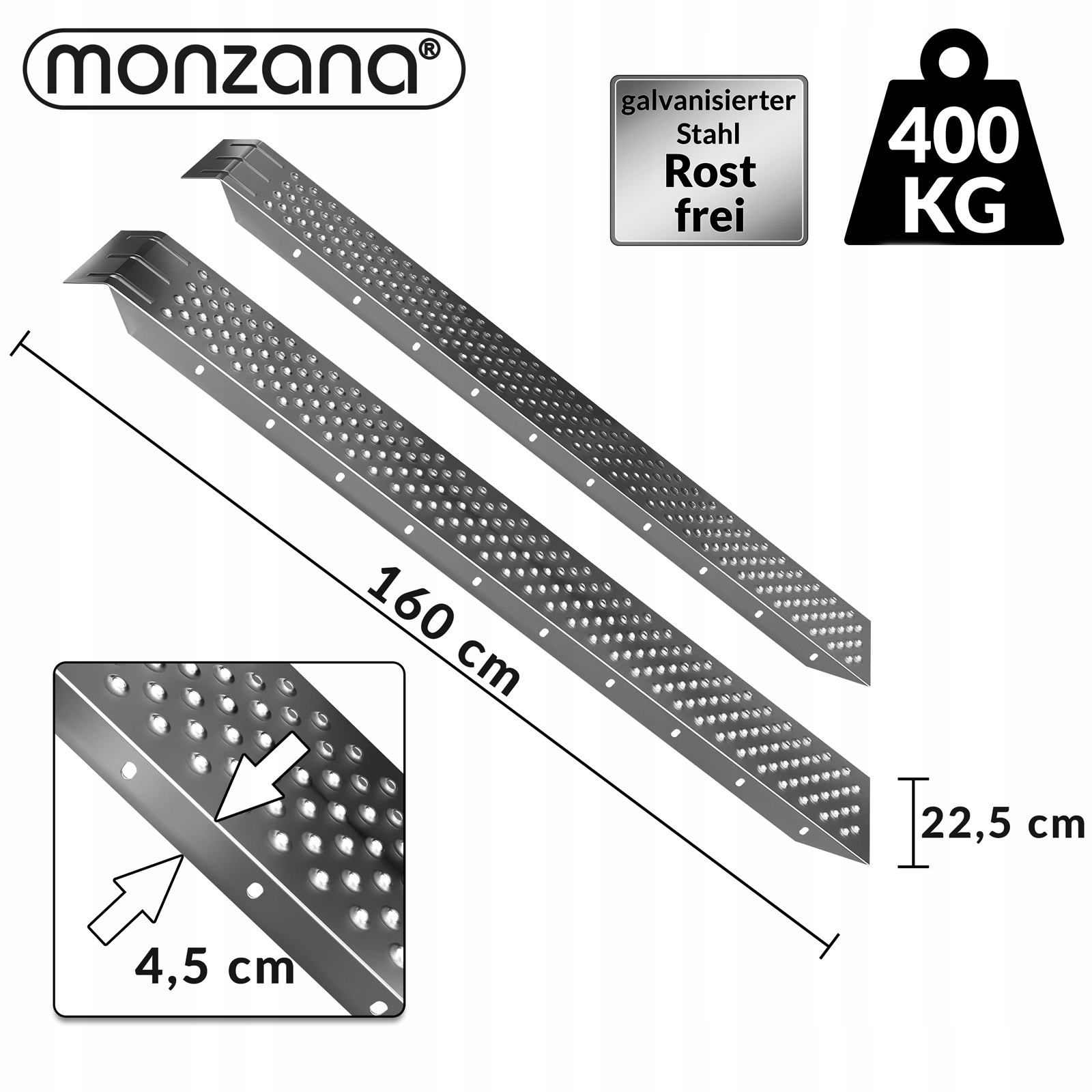 Рампа витримує навантаження до 200 кг на одну рейку, тобто сумарно 400 кг. Завдяки малій спорядженій вазі 6 кг кожну рампу легко транспортувати.