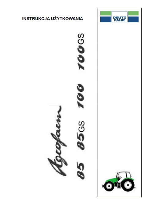 Deutz-Fahr AGROFARM 85, 85GS, 100, 100GS - Instrukcja obsługi ciągników PL