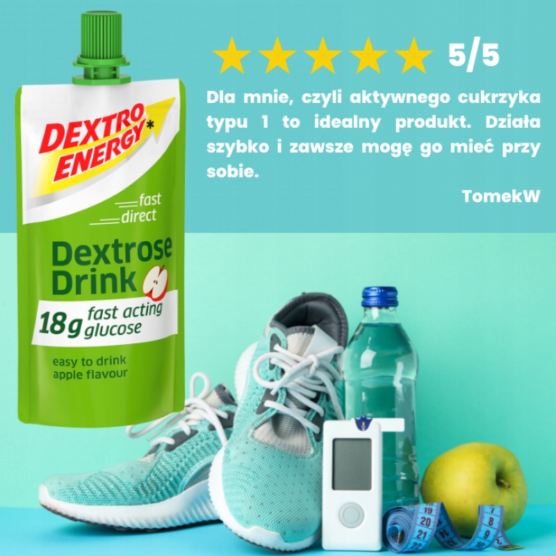 Рідка глюкоза Dextro Energy у формі гелю легко дозується та швидко засвоюється організмом. Декстроза, що міститься в них, є кращим джерелом енергії, а завдяки зручній упаковці дозволяє забезпечити глюкозу в будь-який час, особливо в умовах підвищеної потреби в енергії/цукрі. Люди з ризиком гіпоглікемії можуть використовувати цей продукт, коли рівень цукру в крові швидко падає.