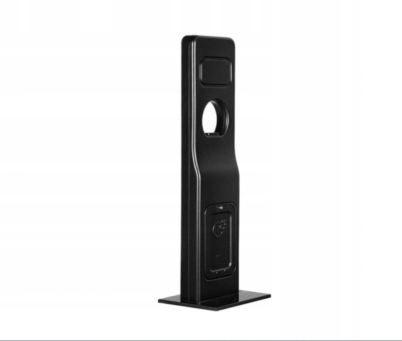 Ця модель дезінфекційної станції дозволяє не тільки дезінфікувати руки за допомогою автоматичного дозування, але й вимірювати температуру тіла за допомогою вбудованого датчика температури. .