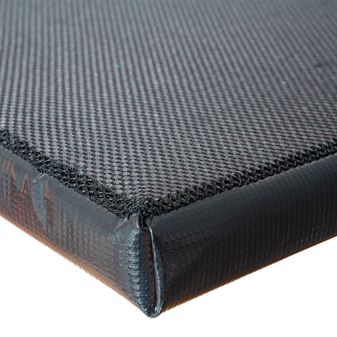 Верх килимка - це міцна сітка. Залежно від версії сітка може бути 1-шаровою (1W) або 3-шаровою (3W). Сітки виготовлені з поліестеру, а це означає, що вони дуже міцні, не розтягуються, не розтираються, гладкі. Вони також характеризуються мінімальним вологопоглинанням і високою стійкістю до стирання.