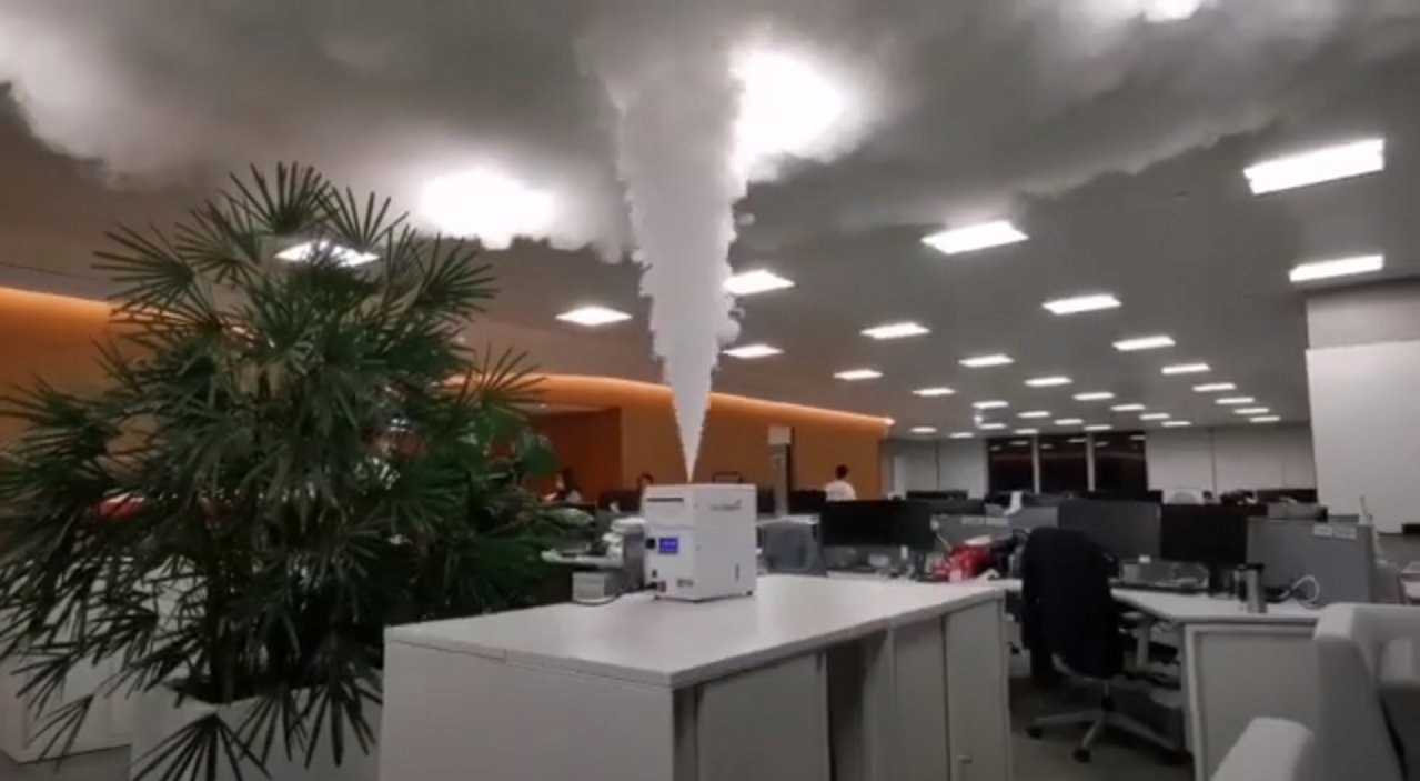 Механізм дозволяє розпилювати концентрований антибактеріальний розчин (Ultra Mist) в ультра невеликому туману, що містить сотні мільйонів мільйонів мікроскопічних "нанометричних" очисних частинок та спеціальних розпилювачів, що утворюють антибактеріальні покриття на контактних поверхнях, такі як ручки, кабінети, комп'ютери, контракти, керуючі, керуючі, аплікаційні засоби, засоби, африбуси, контракти, керуючі, керуючі. тощо.