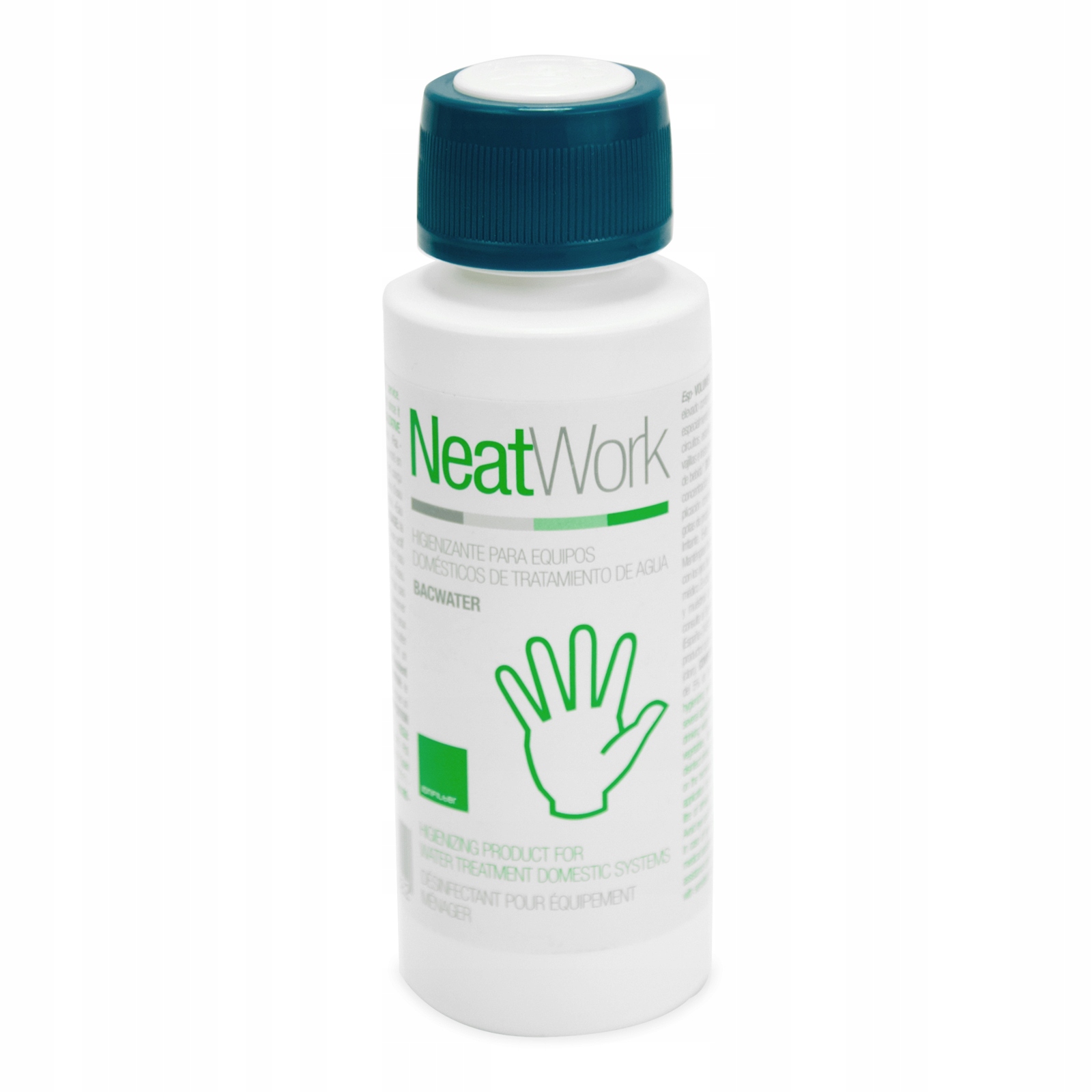 Дезінфекційна рідина NeatWork Bacwater є ідеальним рішенням для дезінфекції та очищенняіонообмінного шару в пом'якшувачах води. Це також добре працює як засіб длядезінфекції фільтрів зворотного осмосу під час щорічної заміни картриджа.