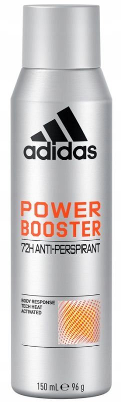 Спрей-антиперспірант Adidas Power Booster забезпечує ефективний захист від вологи та неприємних запахів. Гарантує 72-годинний захист завдяки технології «Smart Body Response», яка дозволяє виділяти шипучий аромат залежно від температури тіла та поту. Аромат складається з нот свіжих фруктів, спецій і перцевої м'яти, підкреслених елегантною деревною базою. Веганська, безалкогольна формула, протестована дерматологами.