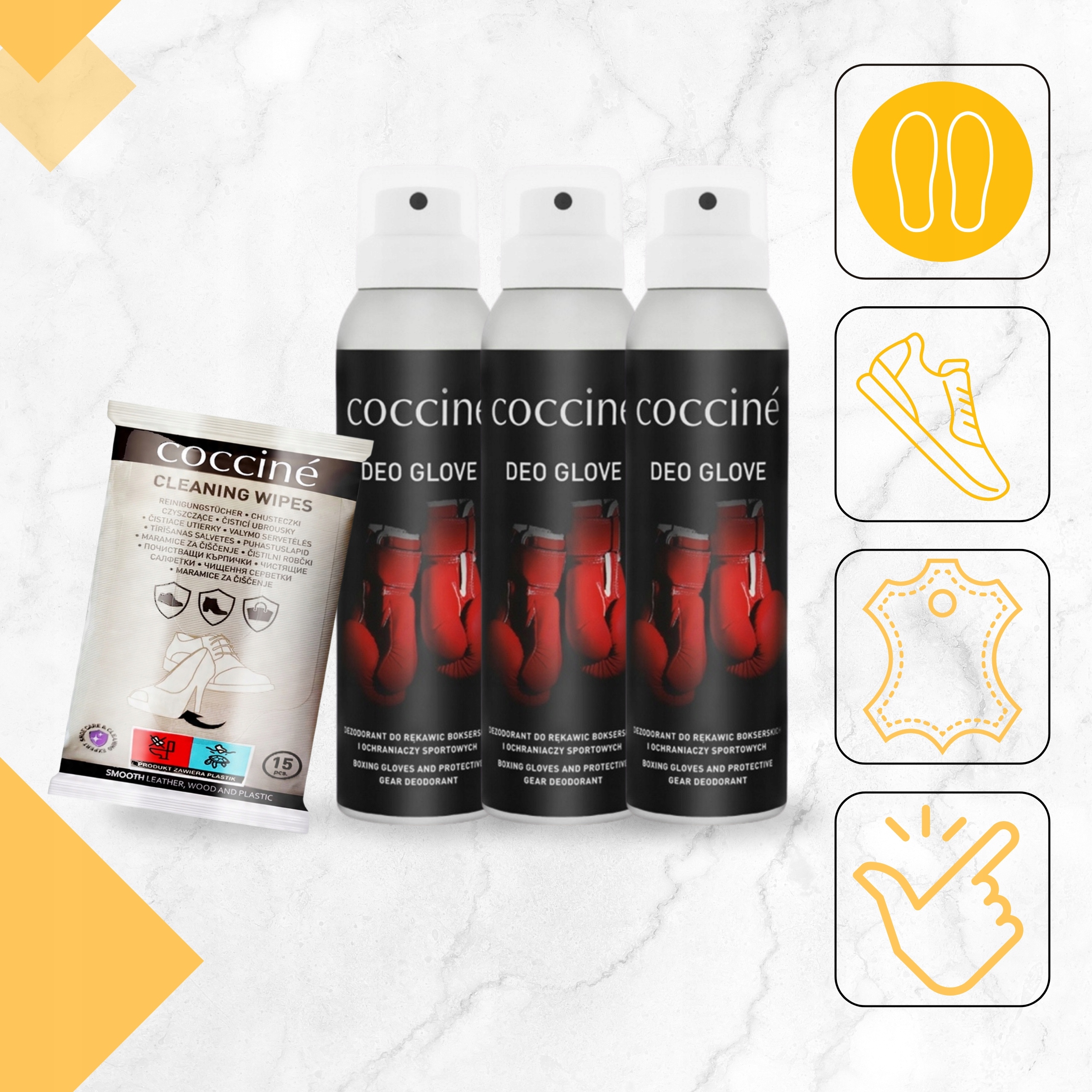 Cocciné Deo Glove Spray 150 мл — це спеціалізований дезодорант для внутрішньої сторони боксерських, ММА та рукавичок для інструментів, а також усіх типів спортивних протекторів.