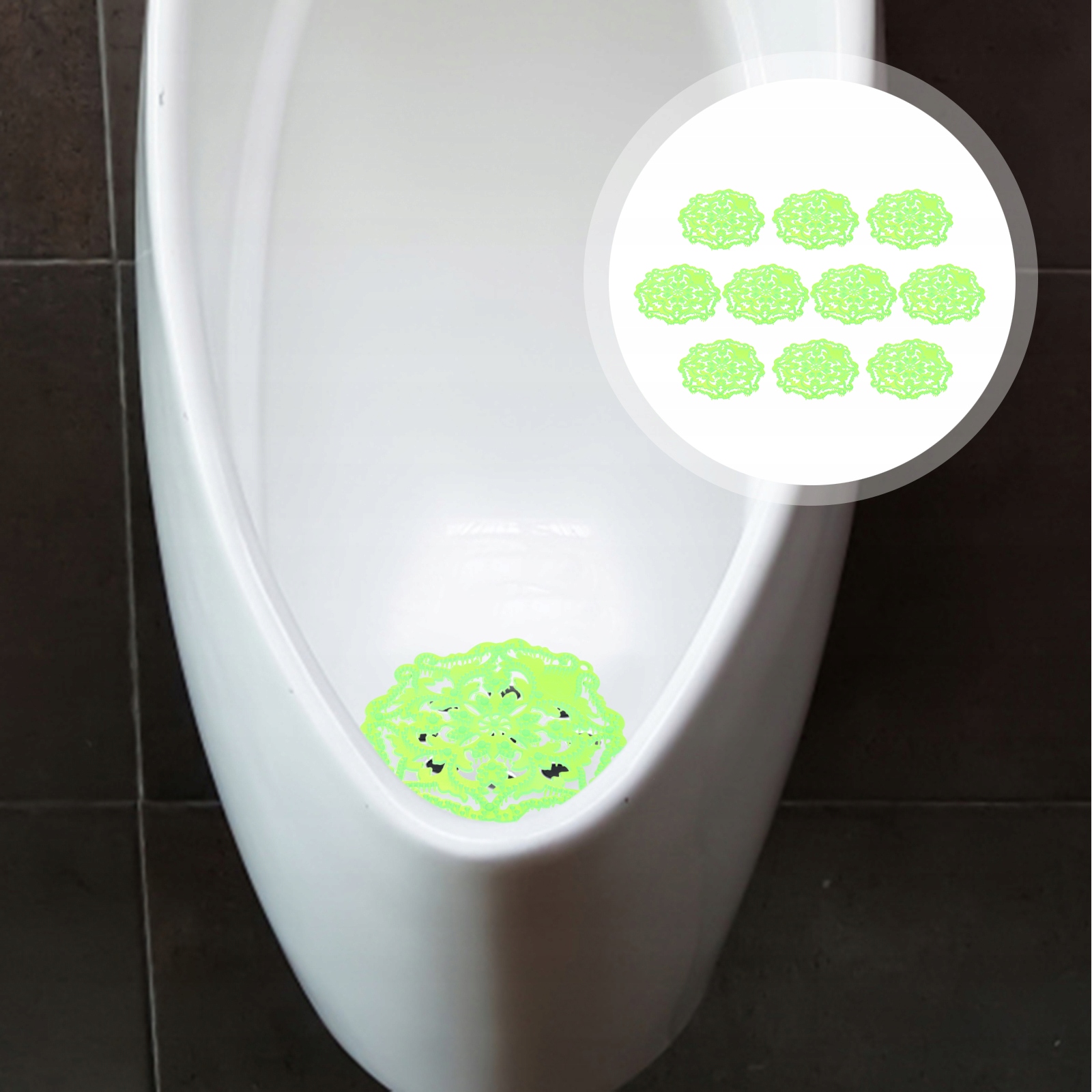 ✅ Розчиняє плями сечі, вловлює бруд і сміття, допомагає запобігти засміченню пісуара.