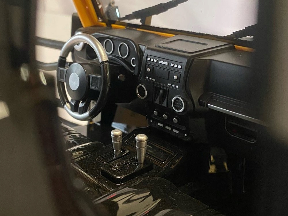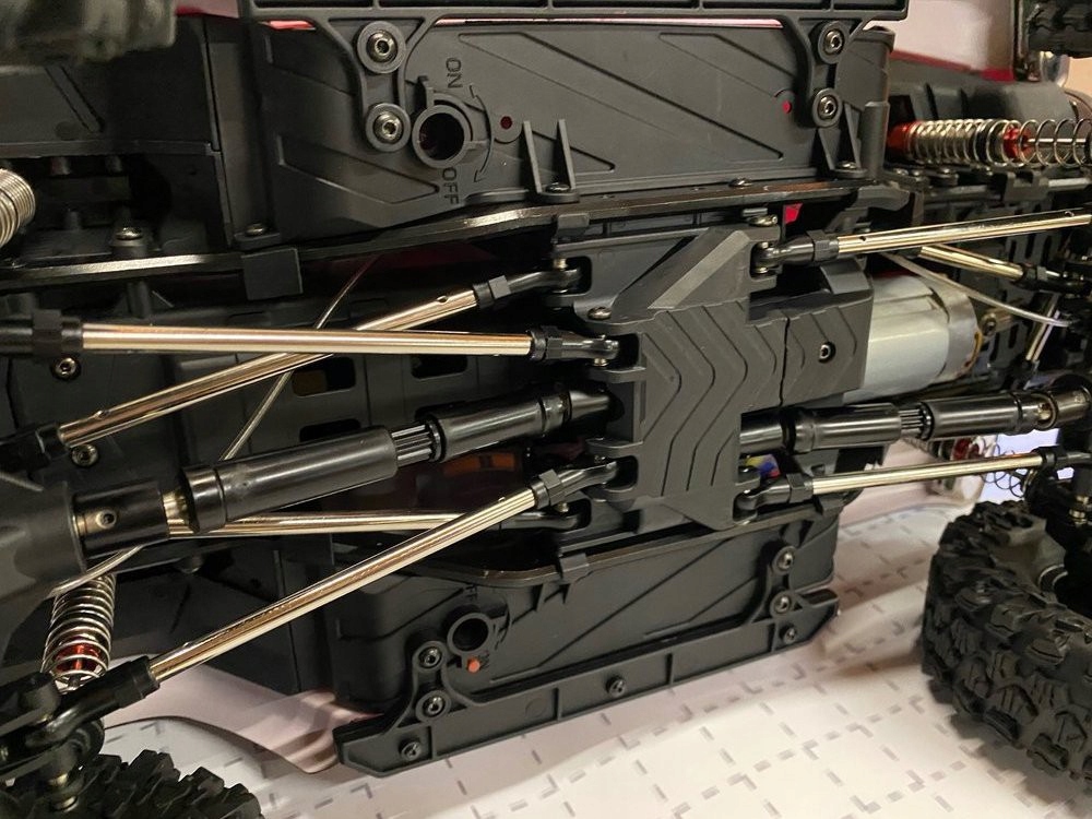 Гусеничний автомобіль DF-4S PRO від DF Models – це позашляхова модель RC вищого класу з колісною базою 313 мм. Під міцним пластиковим кузовом з безліччю деталей і аксесуарів, а також кабіною і дверцятами, що відкриваються, ховається шасі зі сталевим каркасом. Металеві стійки і тяги забезпечують необхідну стійкість. Вертикально встановлені повністю алюмінієві маслонаповнені амортизатори забезпечують чудову ефективність на будь-якій місцевості. 2-швидкісна коробка передач дозволяє повільно повзати (приблизно 3 км/год) і швидко рухатися (приблизно 13 км/год). Електродвигун 550 може живитися від LiPo батареї 7,4 В (продається окремо), що забезпечує надзвичайно тривалий час руху. Завдяки універсальному акумуляторному тримачу можна використовувати практично будь-який тип акумулятора LiPo 2S. Кузов оснащений світлодіодним освітленням (світлова панель, прожектор, ліхтар заднього ходу, стоп-сигнал, покажчики повороту). Електрична лебідка зі сталевим тросом може управлятися за допомогою пульта. Це лише стандартні функції гусеничного DF-4S PRO... модель пропонує набагато більше функцій! Диференціали можна заблокувати або розблокувати за допомогою пульта дистанційного керування (обидва розблоковані, обидва заблоковані, лише передній заблокований і задній розблокований). Привід до коліс додатково зменшується коробкою передач, що забезпечує ідеальну потужність. Портальні осі мають додаткову перевагу в тому, що модель має більший кліренс і не «перестрибує» перешкоди, як у стандартних осей. Пульт дистанційного керування — ще одна особливість. Тут ви можете прочитати різні дані на РК-дисплеї, стан батареї трансмітера, потужність коробки передач, увімкнену передачу (низьку або високу), кут повороту керма в%, положення дросельної заслінки в%, стан триммера. На кермі є додатковий важіль, що дозволяє «керувати однією рукою». DF-4S PRO поставляється в транспортному кейсі.