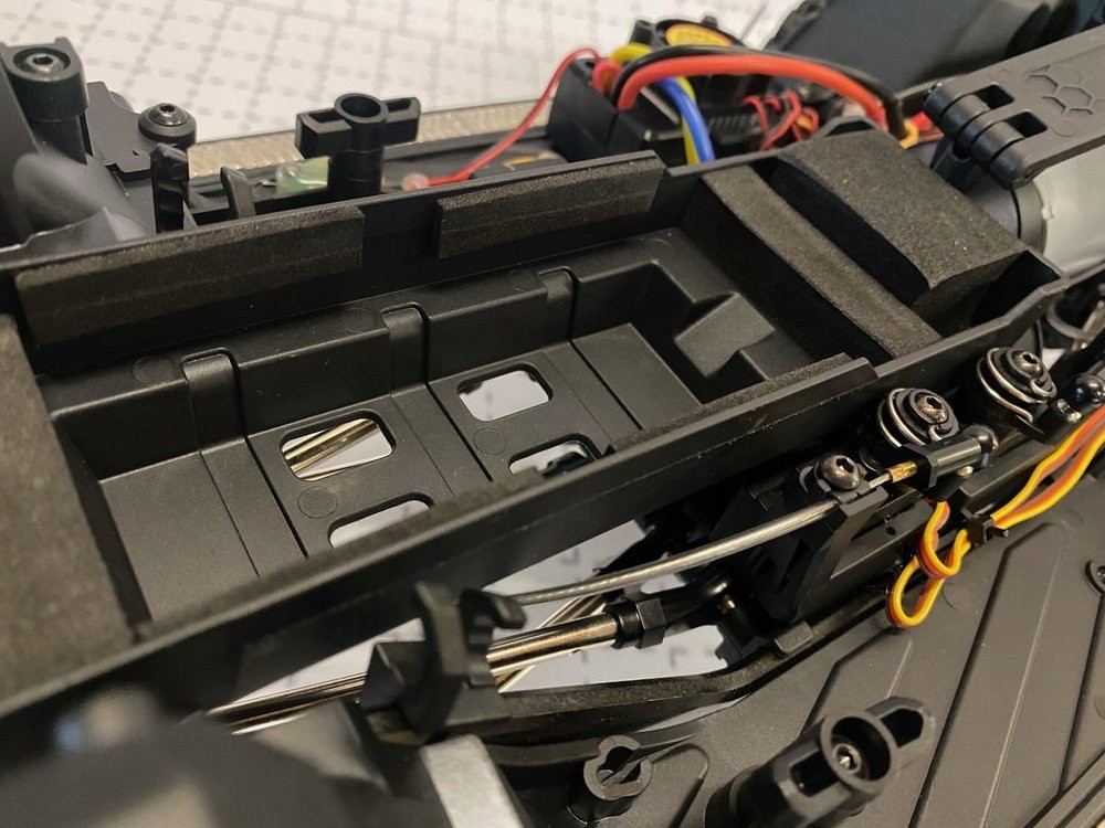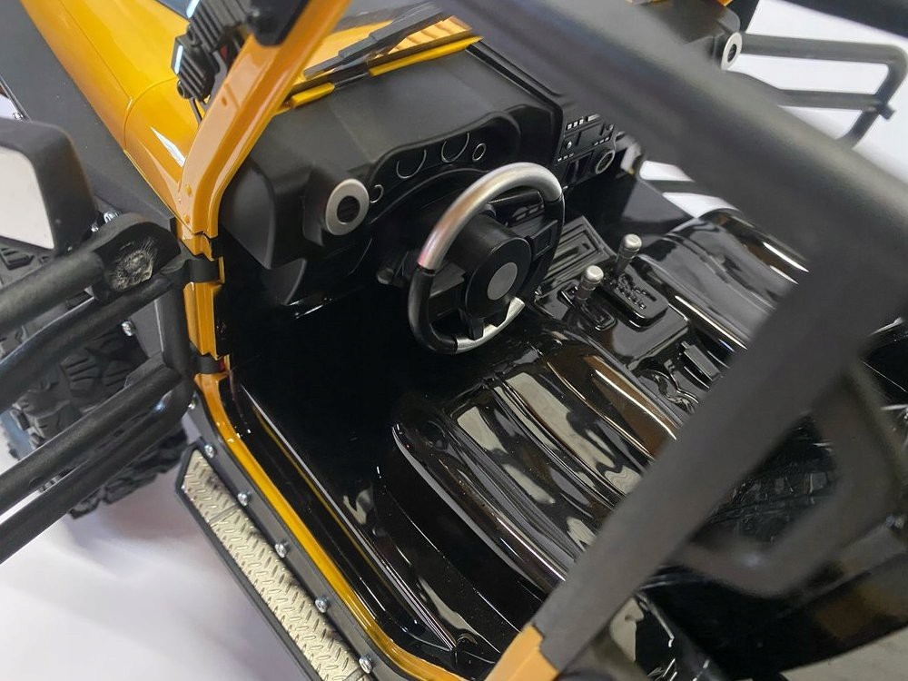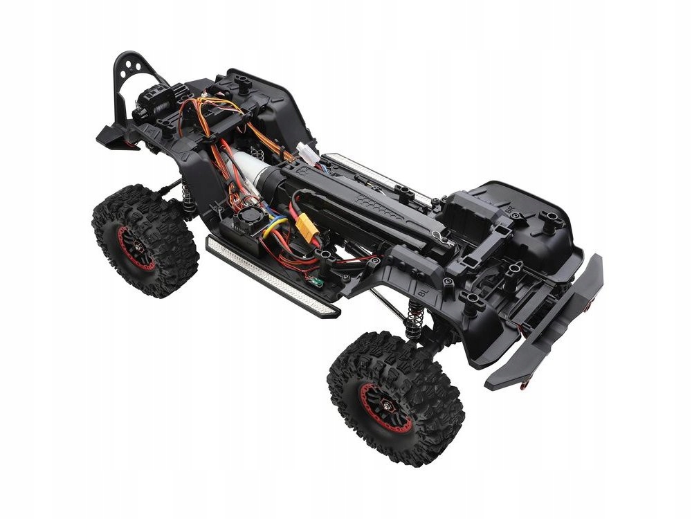 Гусеничний автомобіль DF-4S PRO від DF Models — це позашляхова модель RC вищого класу з колісною базою 313 мм. Під міцним пластиковим кузовом з безліччю деталей і аксесуарів, а також кабіною і дверцятами, що відкриваються, ховається шасі зі сталевим каркасом. Металеві стійки і тяги забезпечують необхідну стійкість. Вертикально встановлені повністю алюмінієві маслонаповнені амортизатори забезпечують чудову ефективність на будь-якій місцевості. 2-швидкісна коробка передач дозволяє повільно повзати (приблизно 3 км/год) і швидко рухатися (приблизно 13 км/год). Електродвигун 550 може живитися від акумулятора LiPo 7,4 В (продається окремо), що забезпечує надзвичайно тривалий час руху. Завдяки універсальному акумуляторному тримачу можна використовувати практично будь-який тип акумулятора LiPo 2S. Кузов оснащений світлодіодним освітленням (світлова панель, прожектор, ліхтар заднього ходу, стоп-сигнал, покажчики повороту). Електрична лебідка зі сталевим тросом може управлятися за допомогою пульта. Це лише стандартні функції гусеничного DF-4S PRO... модель пропонує набагато більше функцій! Диференціали можна заблокувати або розблокувати за допомогою пульта дистанційного керування (обидва розблоковані, обидва заблоковані, лише передній заблокований і задній розблокований). Привід до коліс додатково зменшується коробкою передач, що забезпечує ідеальну потужність. Портальні осі мають додаткову перевагу в тому, що модель має більший кліренс і не «перестрибує» перешкоди, як у стандартних осей. Пульт дистанційного керування — ще одна особливість. Тут ви можете прочитати різні дані на РК-дисплеї, стан батареї трансмітера, потужність коробки передач, увімкнену передачу (низьку або високу), кут повороту керма в%, положення дросельної заслінки в%, стан триммера. На кермі є додатковий важіль, що дозволяє «керувати однією рукою». DF-4S PRO поставляється в транспортному кейсі.