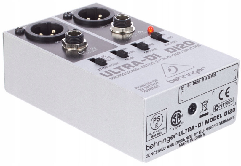 Active DI Box Behringer DI20 — це професійний багатофункціональний пристрій для студійних і живих заходів. Di-box використовуються для підключення пристроїв, які працюють без заземлення, як правило: клавіатура, ноутбук, електрогітара, акустична гітара. Дуже міцний металевий корпус DI Box. Внутрішня батарея автоматично відключається, коли подається фантомне живлення.