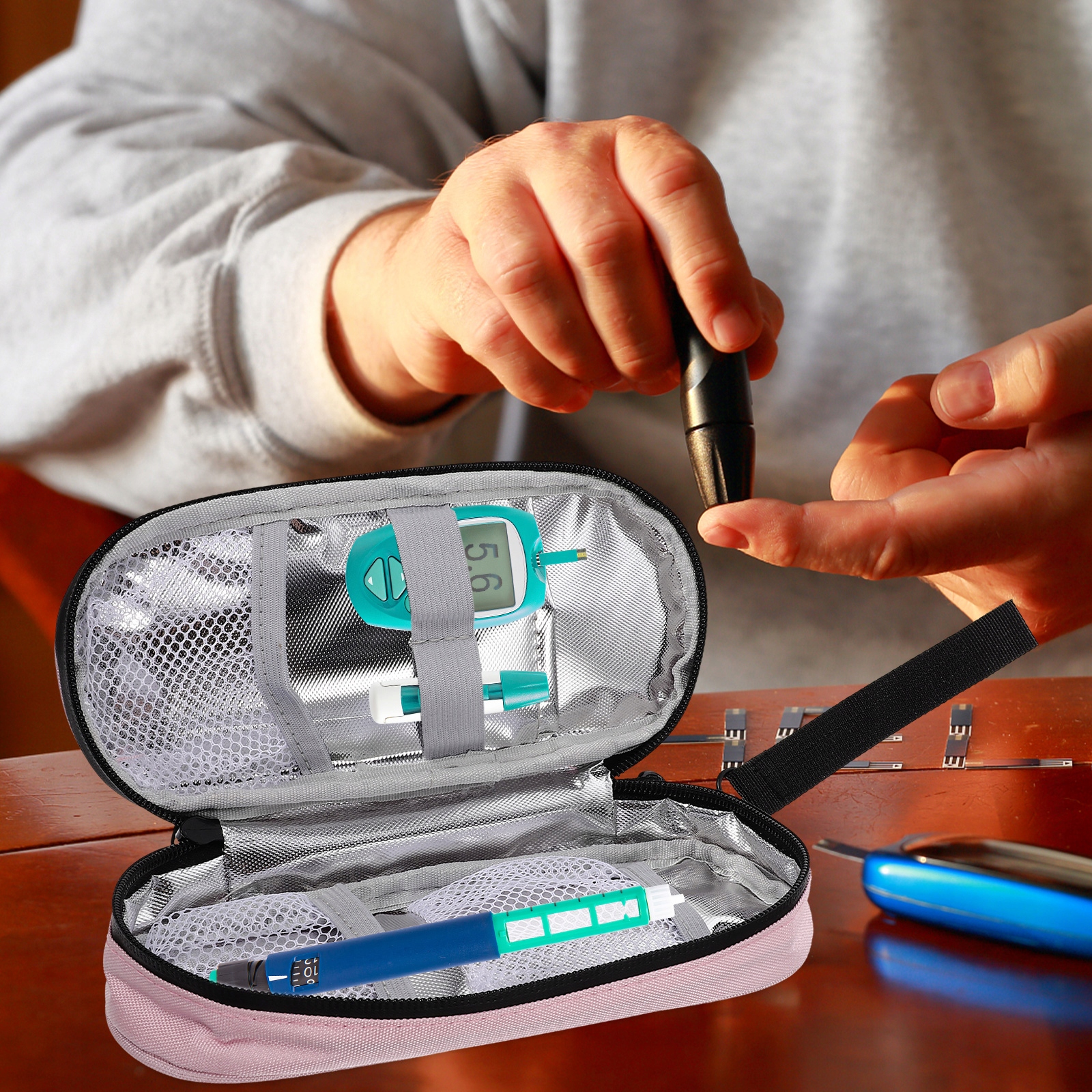 ✅Малий футляр для інсуліну характеризується хорошою герметичністю та чудово захищає внутрішні ліки. Можна використовувати для зберігання глюкометра, пристрою для проколу, тест-смужок, спиртових серветок тощо.