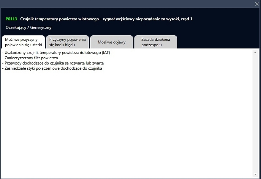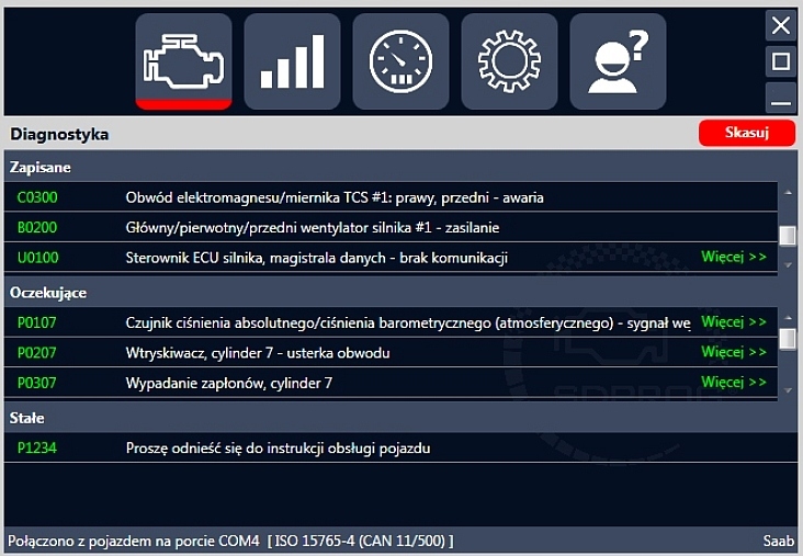 - Коди помилок читання: Збережено, очікування, постійне, загальне, а також конкретні для даного виробника,