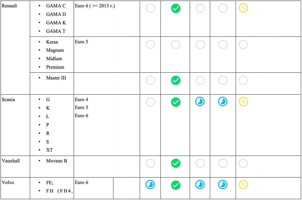 renault - всі моделі з викидом Euro 6 (з 2013 року), включаючи: