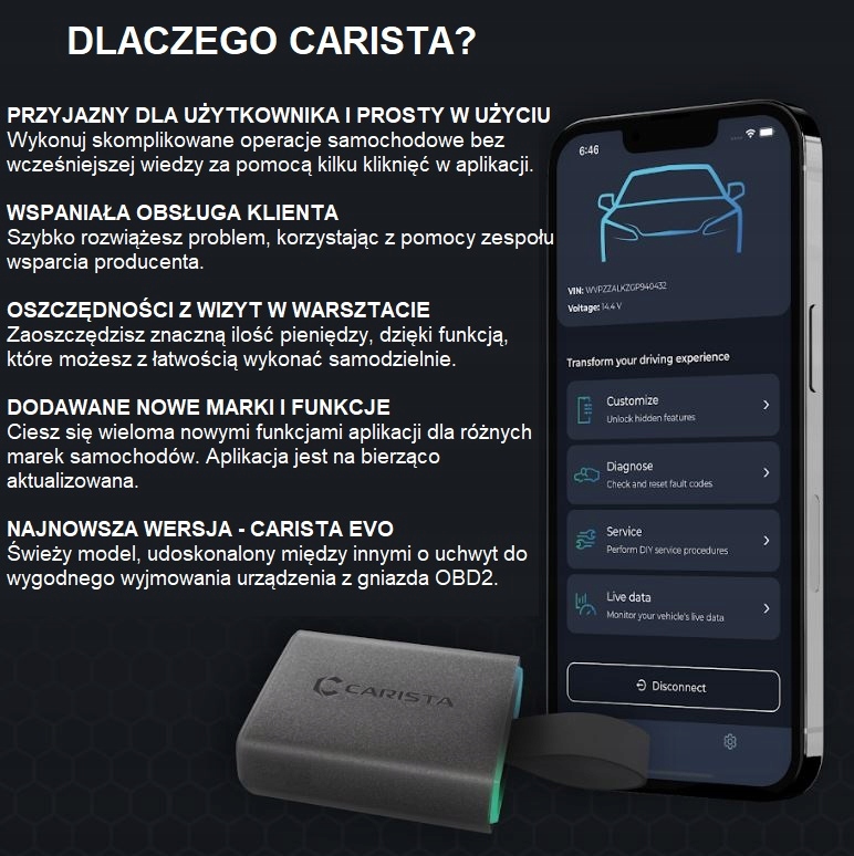 CARISTA – фірмовий діагностичний інтерфейс OBD2 (остання модель – прем’єра в грудні 2023 р. – модель 2024 р.):