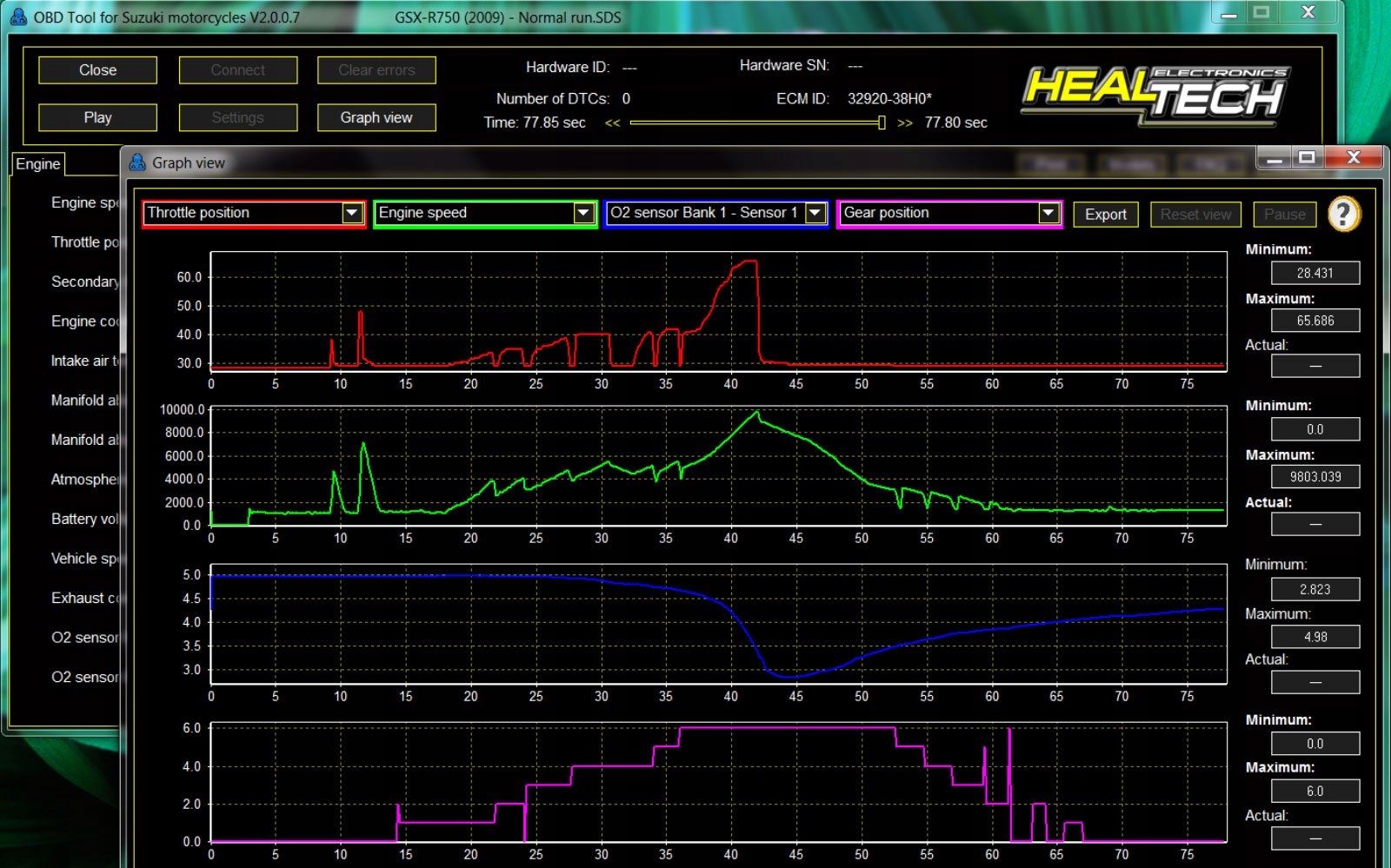 значення технічних датчиків відображаються в режимі реального часу, що дозволяє навченому персоналу аналізувати розширені несправності та роботу двигуна. Також доступні тестові функції. Він автоматично фіксує вимірювання, і ви можете завантажити їх із диска, коли захочете. Друкуйте звіти своїм клієнтам. Також доступний експорт до Excel.