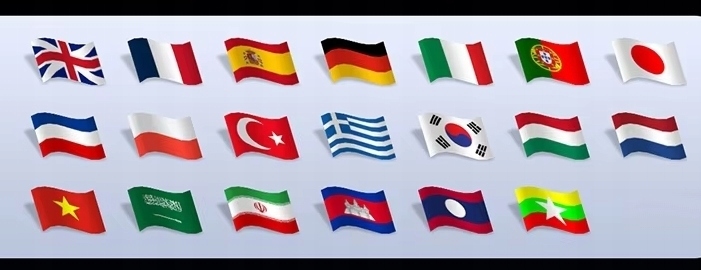 англійська, французька, іспанська, німецька, італійська, португальська, японська, російська, польська, традиційна китайська, турецька , грецька, корейська, угорська, голландська, в'єтнамська, арабська, перська, кхмерська, лаоська, бірманська, Тайська.