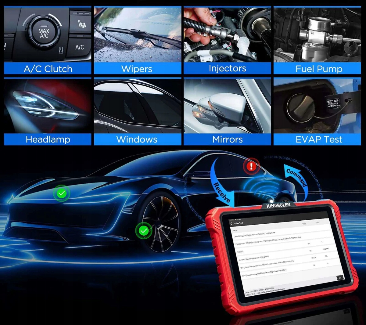 Діагностичний інструмент для сканування автомобілів Kingbolen K10 пропонує повну здатність контролю у двох напрямках для надсилання команд до систем/компонентів транспортних засобів, щоб перевірити вхід/вихід системи без використання транспортних засобів, наприклад. Вентилятор радіатора,