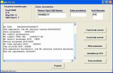 Після запуску програми вибираємо модуль, з яким хочемо підключитися (це може бути контролер двигуна, контролер ABS, контролер подушок безпеки, контролер іммобілайзера або будь-який інший з кількох десятків наявних). Вибравши відповідний модуль, ми чекаємо відповіді драйвера.
