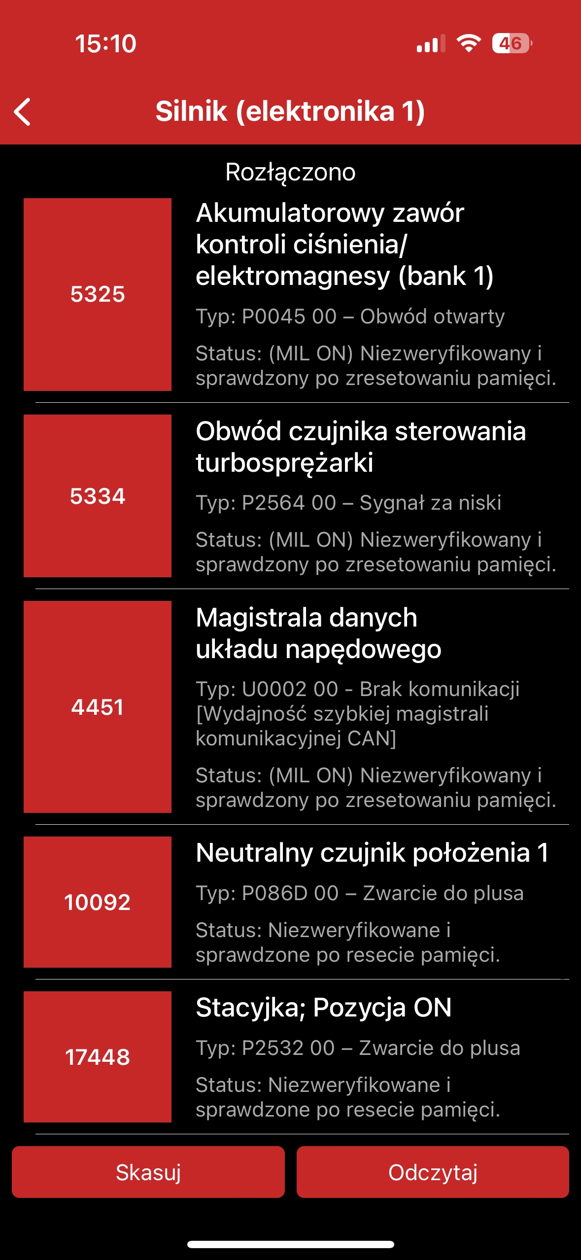Програмне забезпечення дозволяє вам перевірити, чи коди несправностей не були стерті за мить до нашого прибуття.